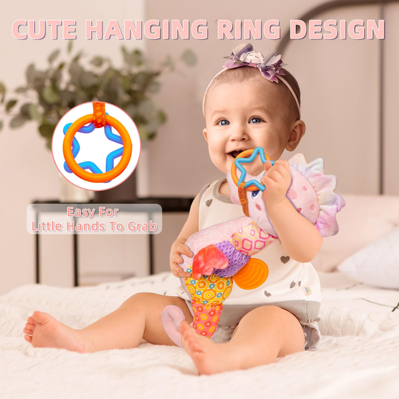 - Q: How does the Baby Seahorse Toy aid in sensory development? A: This toy promotes sensory development through its combination of crinkle sound paper, vibrant colors, and multiple textures designed for easy grasping by small hands. It encourages exploratory play and helps enhance fine motor skills during tummy time.