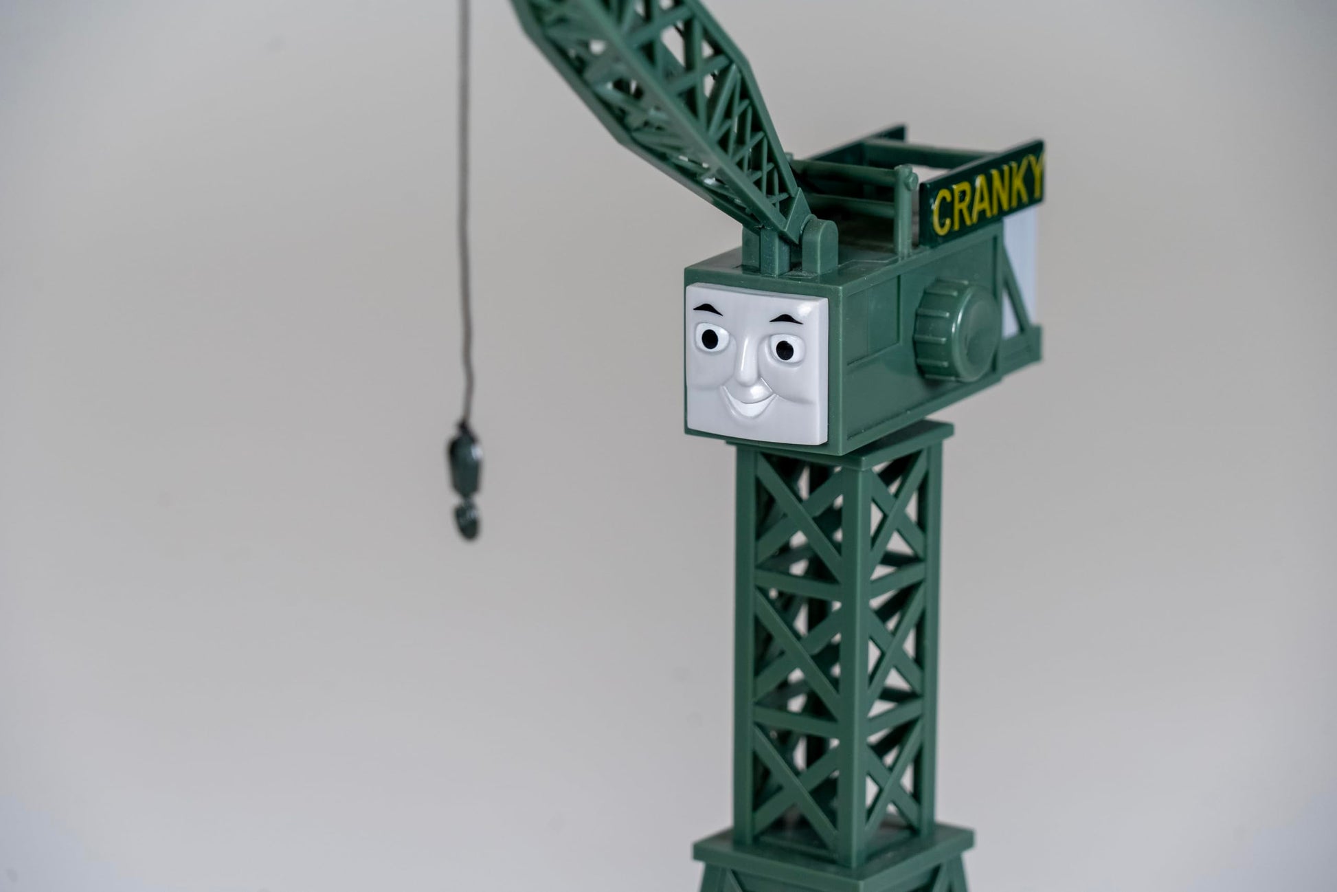 - Q: How does Cranky the Crane operate? A: Cranky the Crane features working crane action, allowing it to pick up and move items, which adds an interactive element to your train set.