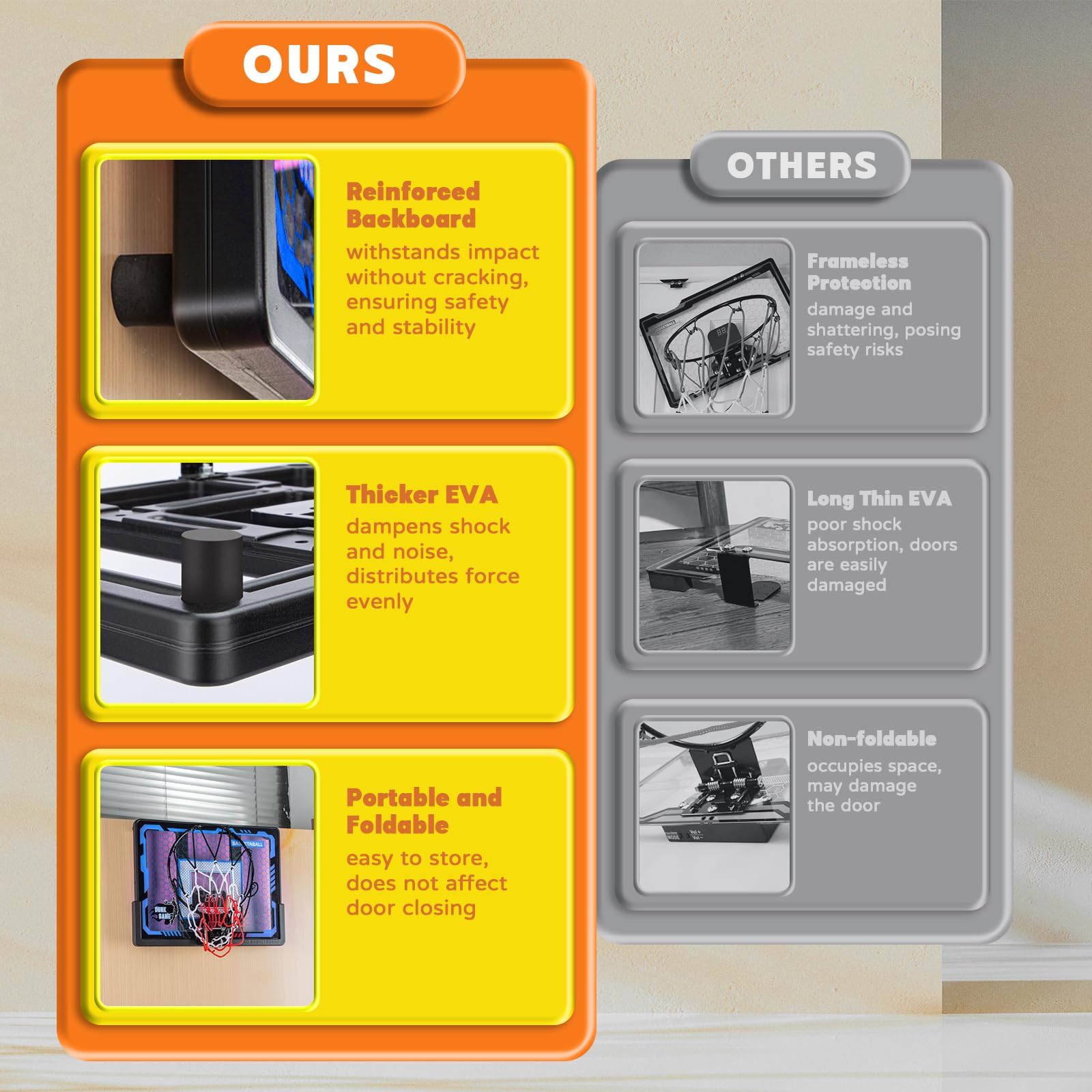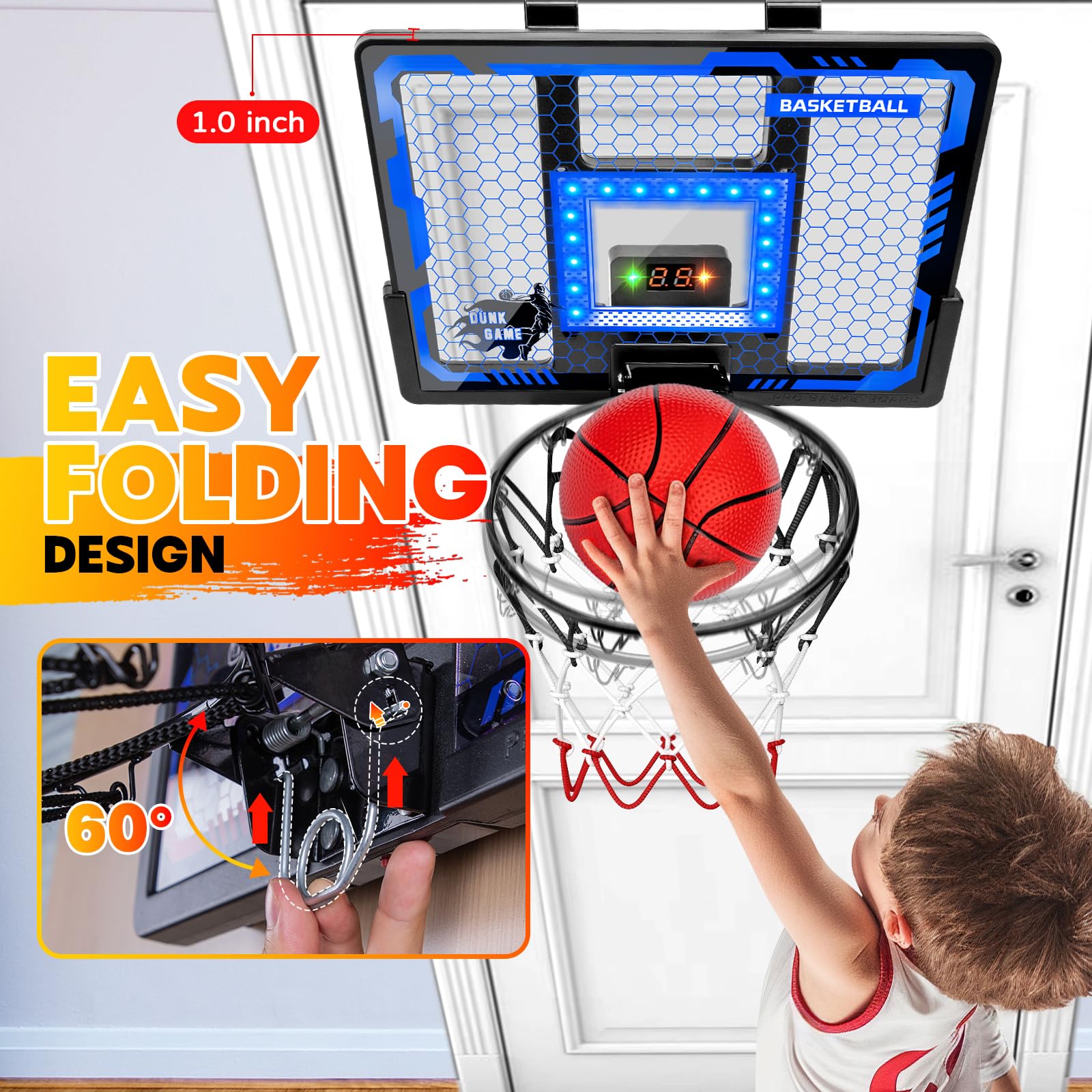 - Q: Does the basketball hoop include any interactive features? A: Yes, it features an electronic scoring system that tracks each shot and cool LED lights that illuminate dunks. The one-touch mute feature and three engaging modes enhance competition while minimizing noise disturbance.