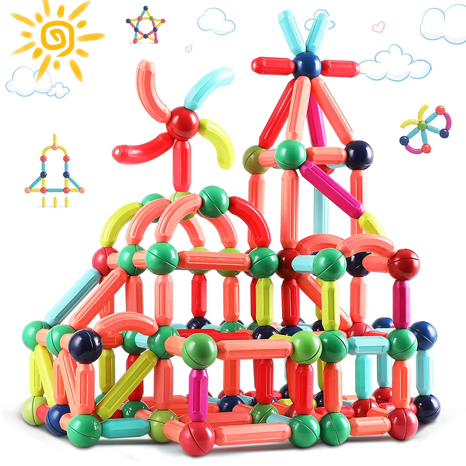 View compareBakam Magnetic Building Blocks For Kids Ages 4-8, Stem Construction Toys For Boys And Girls, Large Size Magnetic Sticks And Balls Game Set For Kid’S Early Educational Learning (64Pcs)