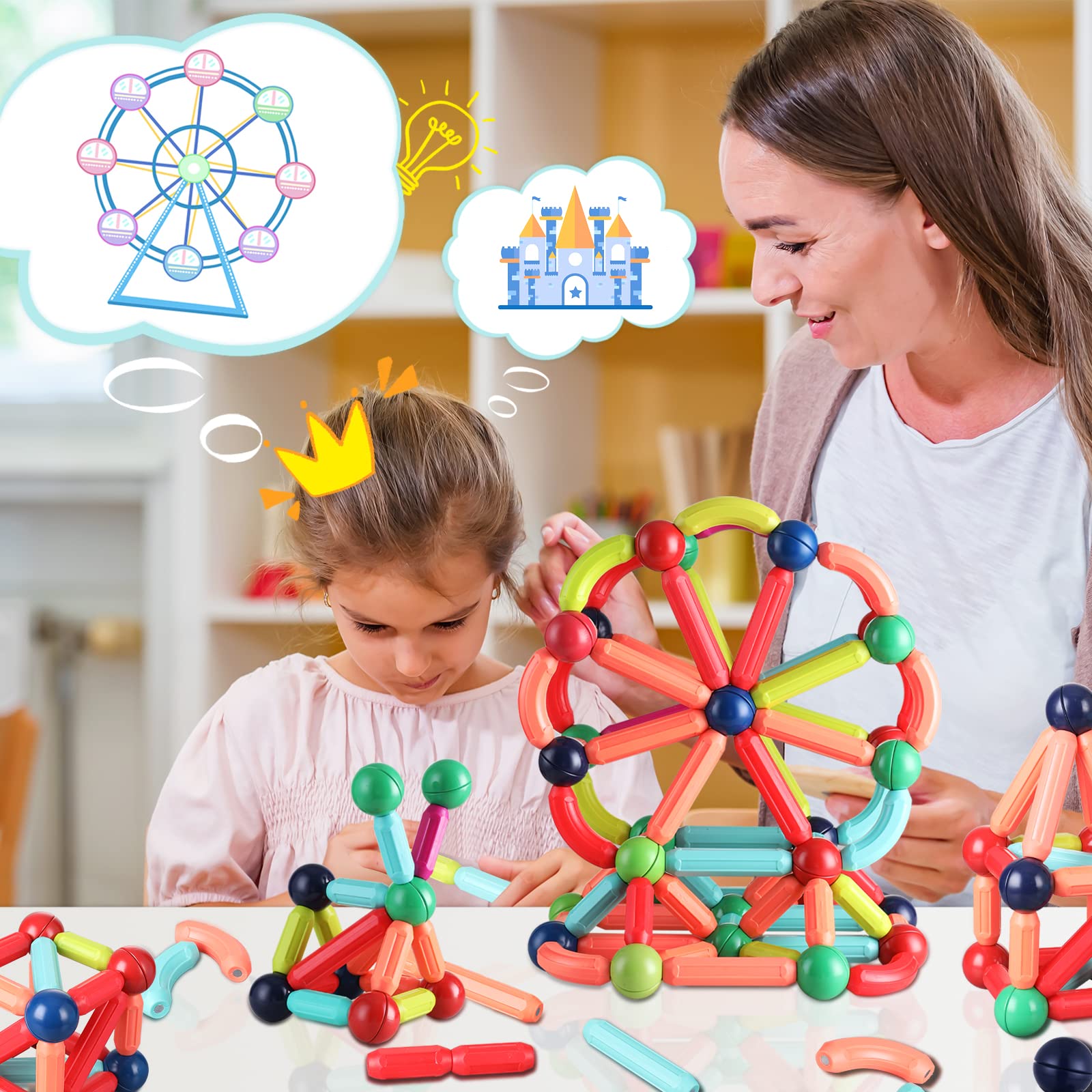 Bakam Magnetic Building Blocks For Kids Ages 4-8, Stem Construction Toys For Boys And Girls, Large Size Magnetic Sticks And Balls Game Set For Kid’S Early Educational Learning