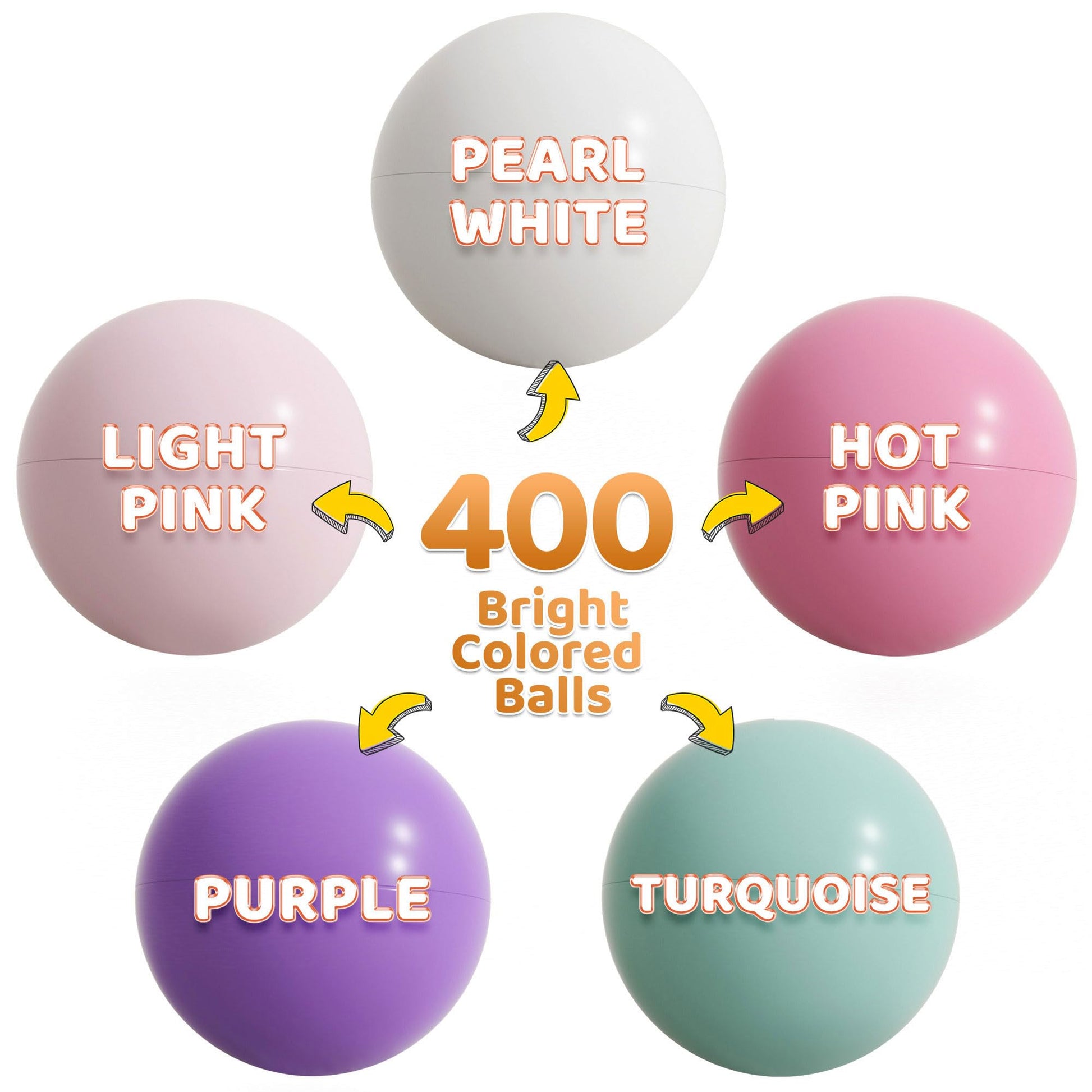 - Q: What colors do the play balls come in? A: These play balls come in five bright and attractive colors: white, pink, light pink, purple, and aqua, making them visually appealing for children.