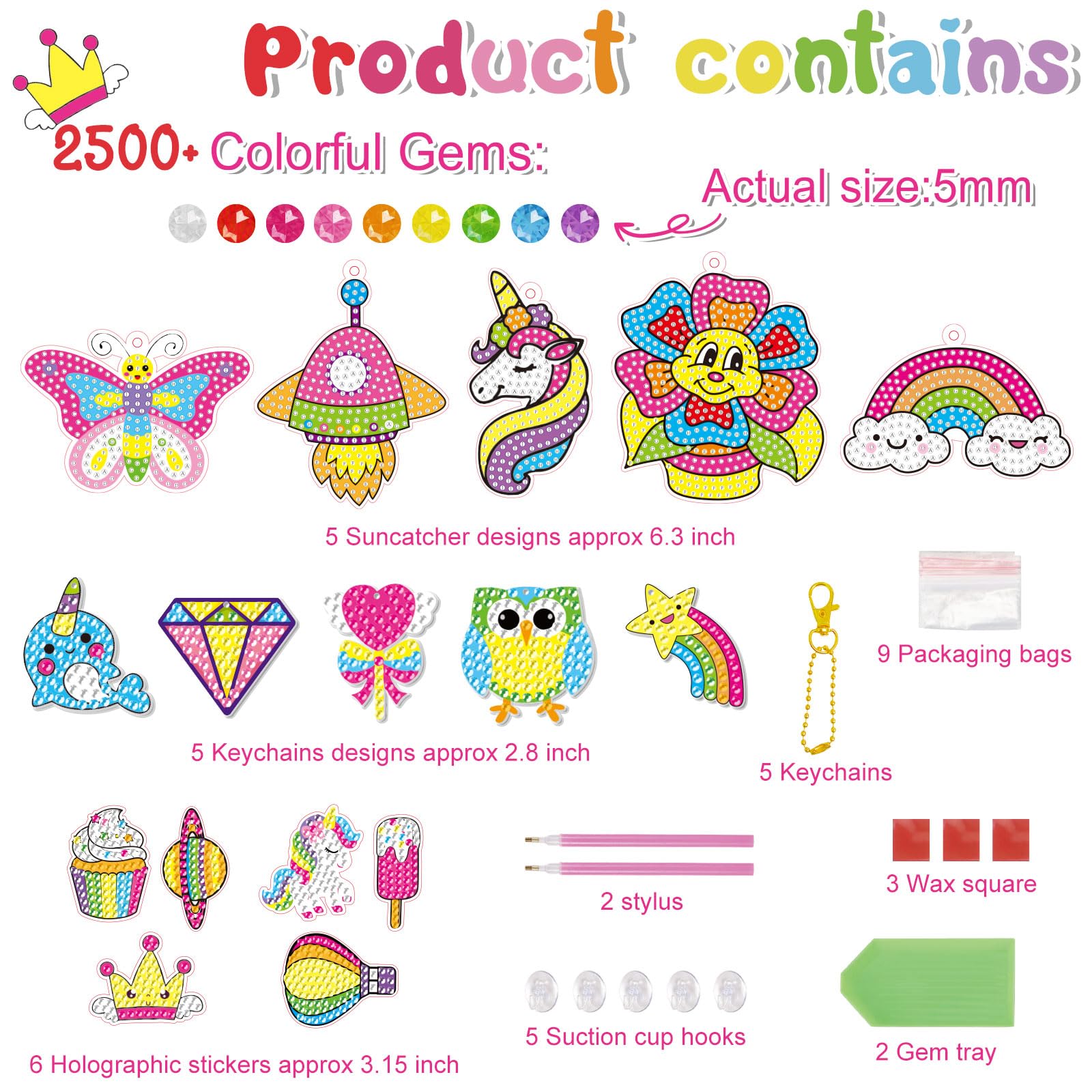 View compareBANBBUR 16 Pcs Gem Art for Kids Age 4-8 8-12,Kids Crafts 5D Gem Diamond Art Kit with 5 Suncatchers/5 Keychains/6 Magical Sticker