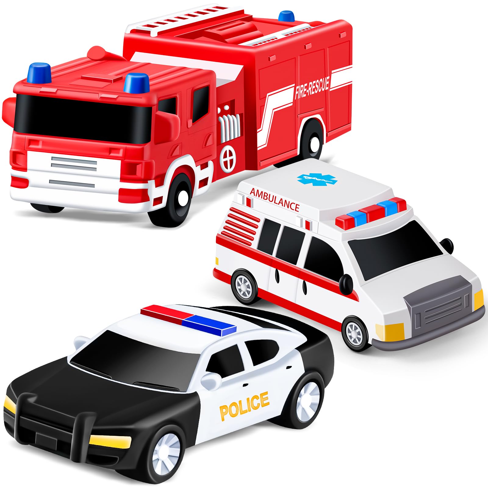 - Q: What types of vehicles are included in this bath toy set? A: The set includes fun and engaging designs of a police car, fire truck, and ambulance, all meticulously crafted to promote imaginative play and cognitive development.