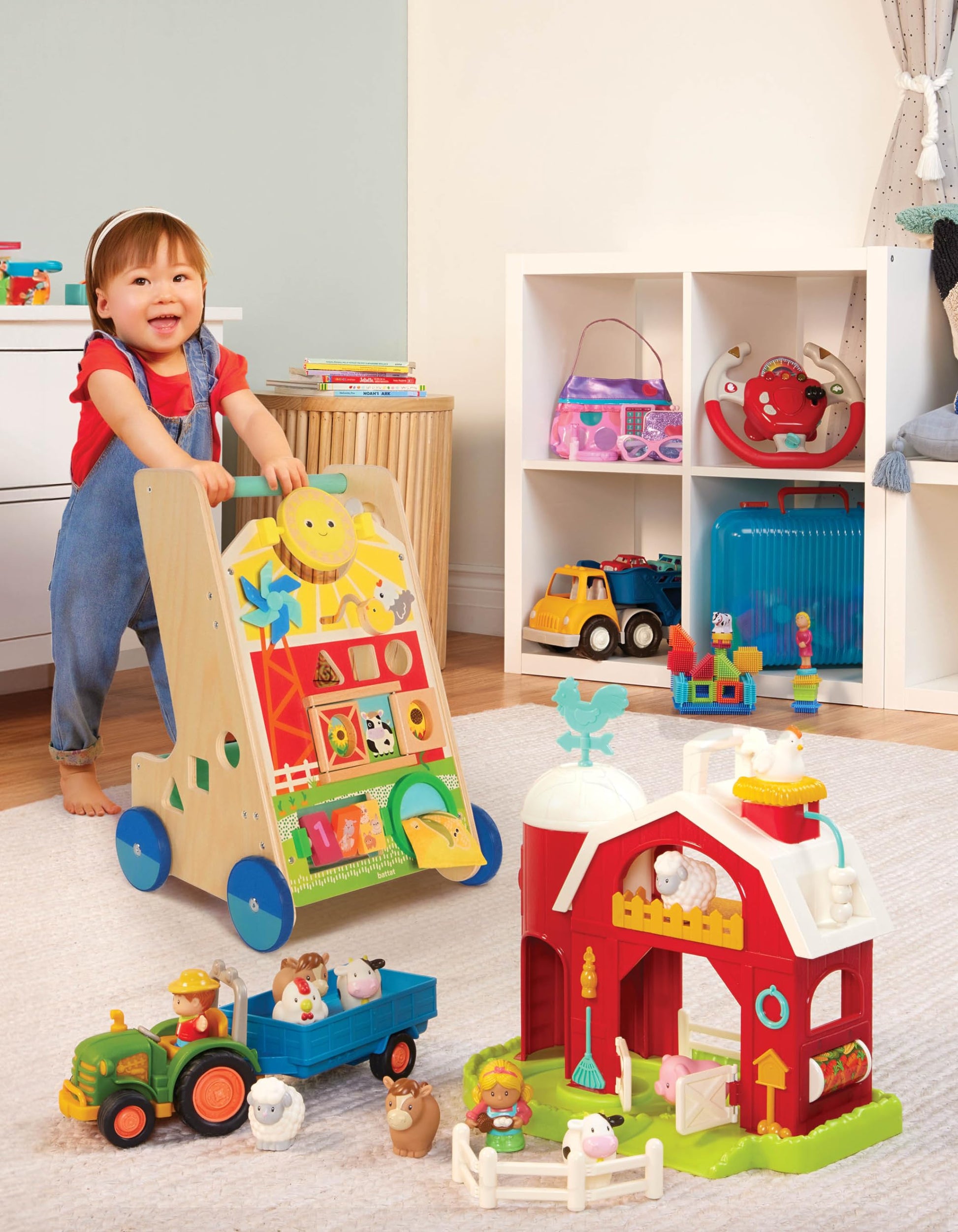 Battat Wooden Activity Walker - 9 Educational Activities - Learning & Walking Toy For Toddlers - Stand, Push, Walk - 1 Year + - Farm Theme