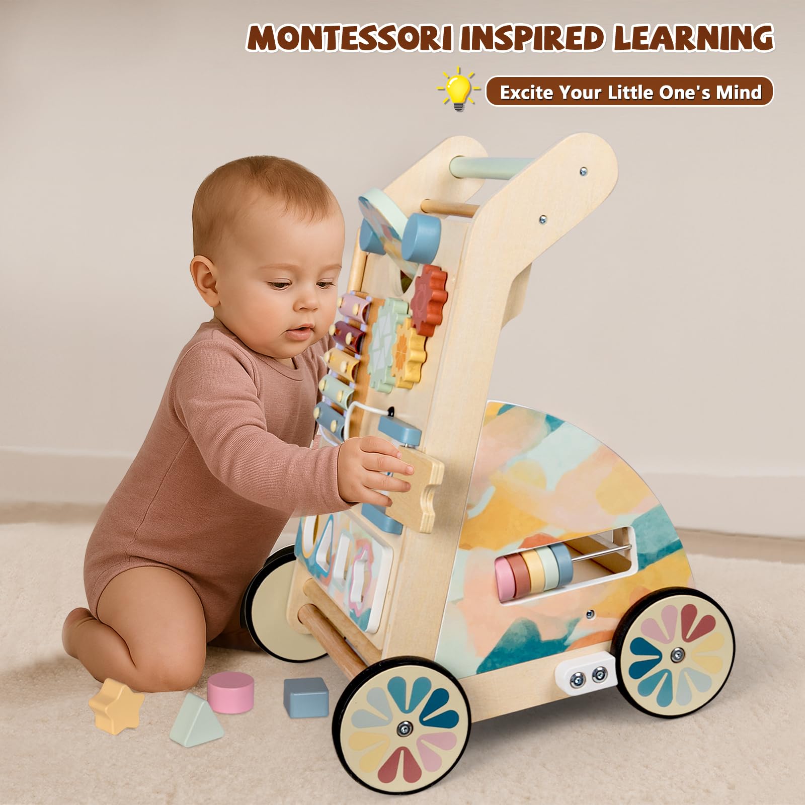 View compareBautia Wooden Baby Walker, Detachable Double-Sided Busy Board, Baby Walking Toys Push Walkers for Babies 6-12 Months