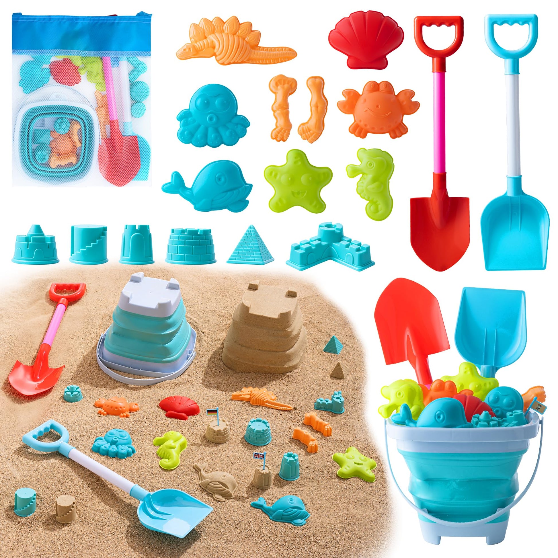 View compareBeach Toys For Kids - Sand Toys Set Includes Collapsible Bucket Shovel And Mesh Bag 19 Pcs, Toddlers Sandbox Toys Sandcastle Bui