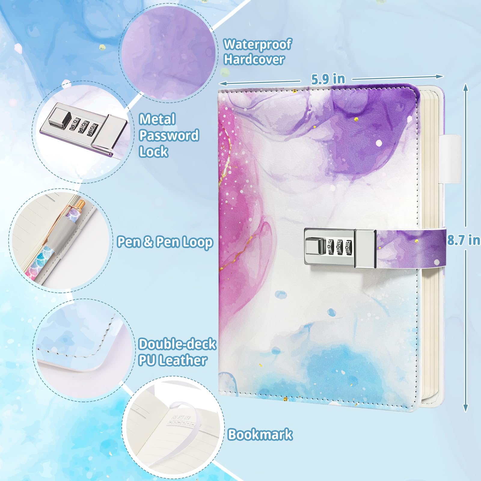 - Q: How does the lock mechanism work on this diary? A: The diary features a secure locking mechanism that ensures all personal thoughts and secrets remain private. Simply use the included key to lock and unlock the diary.