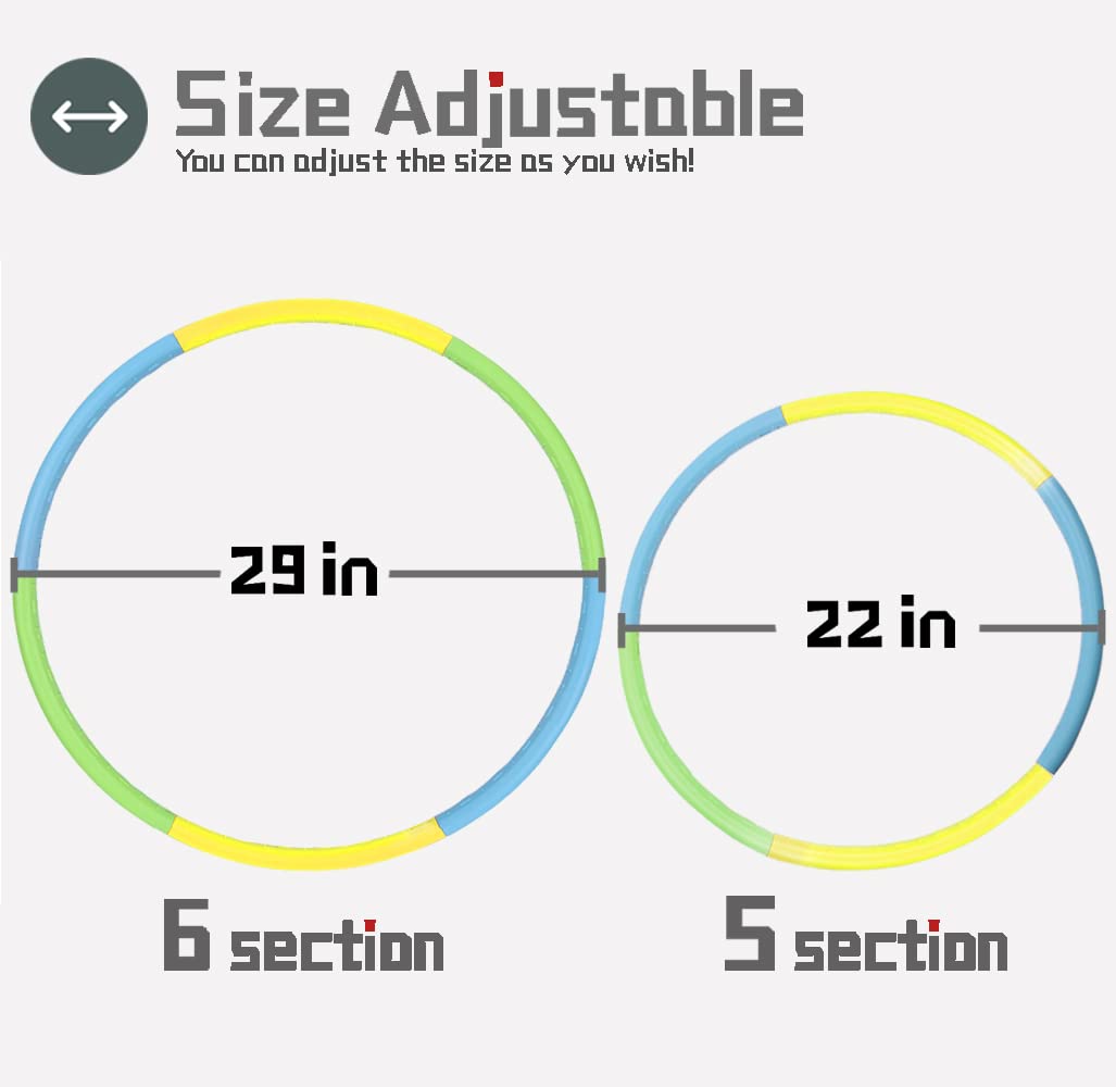 Beakabao Exercise Hoops Set For Kids(6 Parts), Weight And Size Adjustable Detachable Fitness Toys, Suitable For Gymnastics, Dance, Party, Games And Pet Training, 29 Inches (Yellow + Green + Blue)