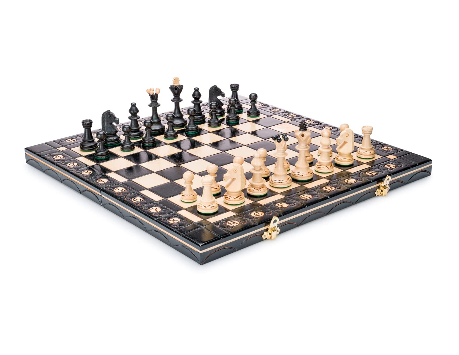 Beautiful Handcrafted Wooden Chess Set With Wooden Board And Handcrafted Chess Pieces - Gift Idea Products (16'' (40 Cm) Black), Beige