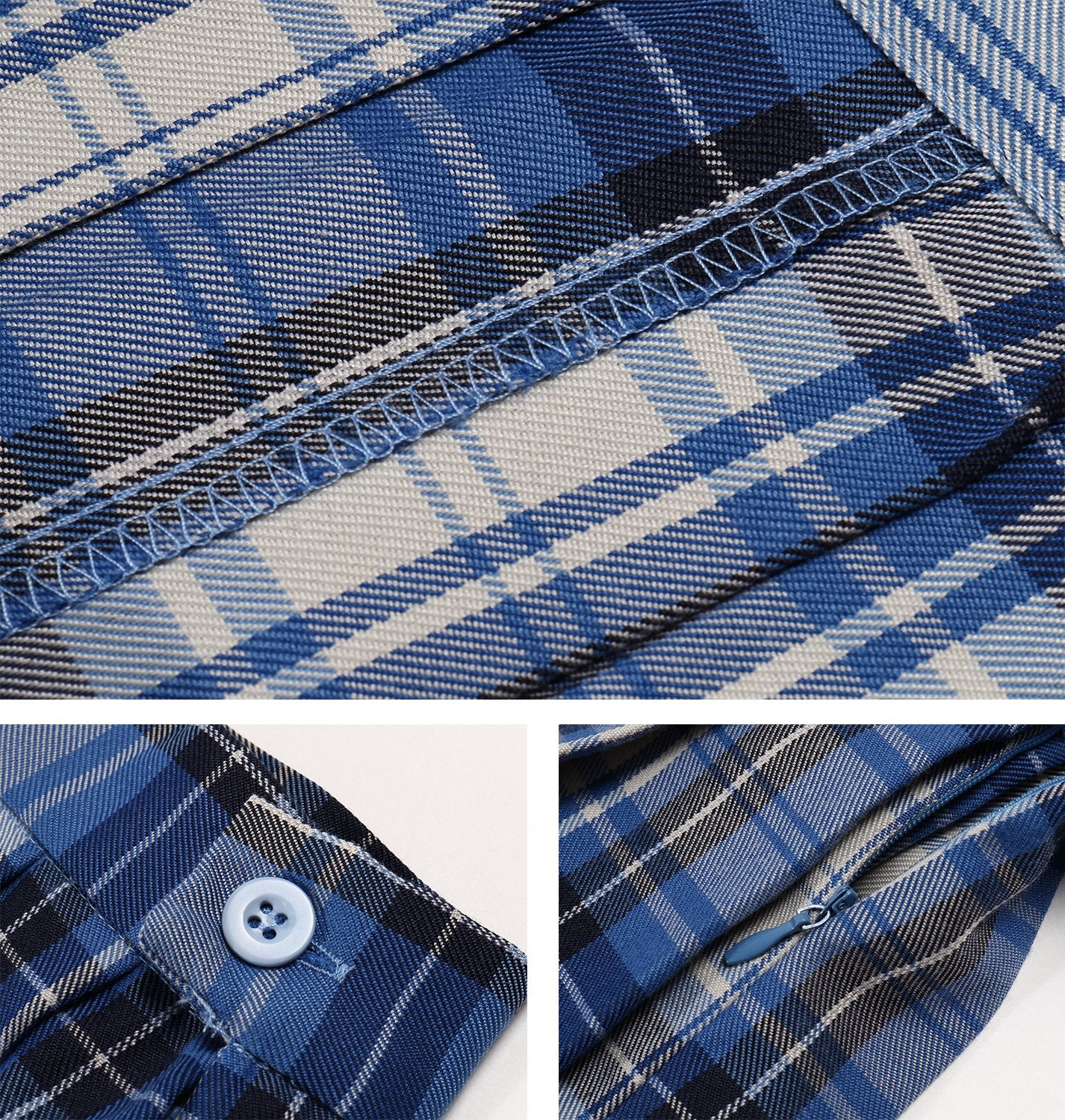 Beautifulfashionlife Girl'S A-Line Kilt Checkered High Waist Pleated Costumes (Xs,Blue White Black)