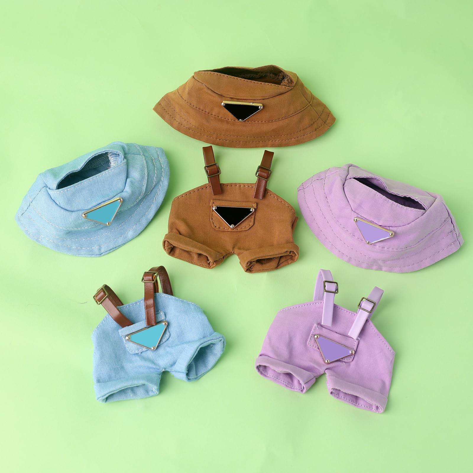 Beem Jun Clothes Set for Labubu 17cm Dolls(NO Doll) Cute Hat & Unique Pocket Design Overalls Dress-up Set (Overalls(Brown))