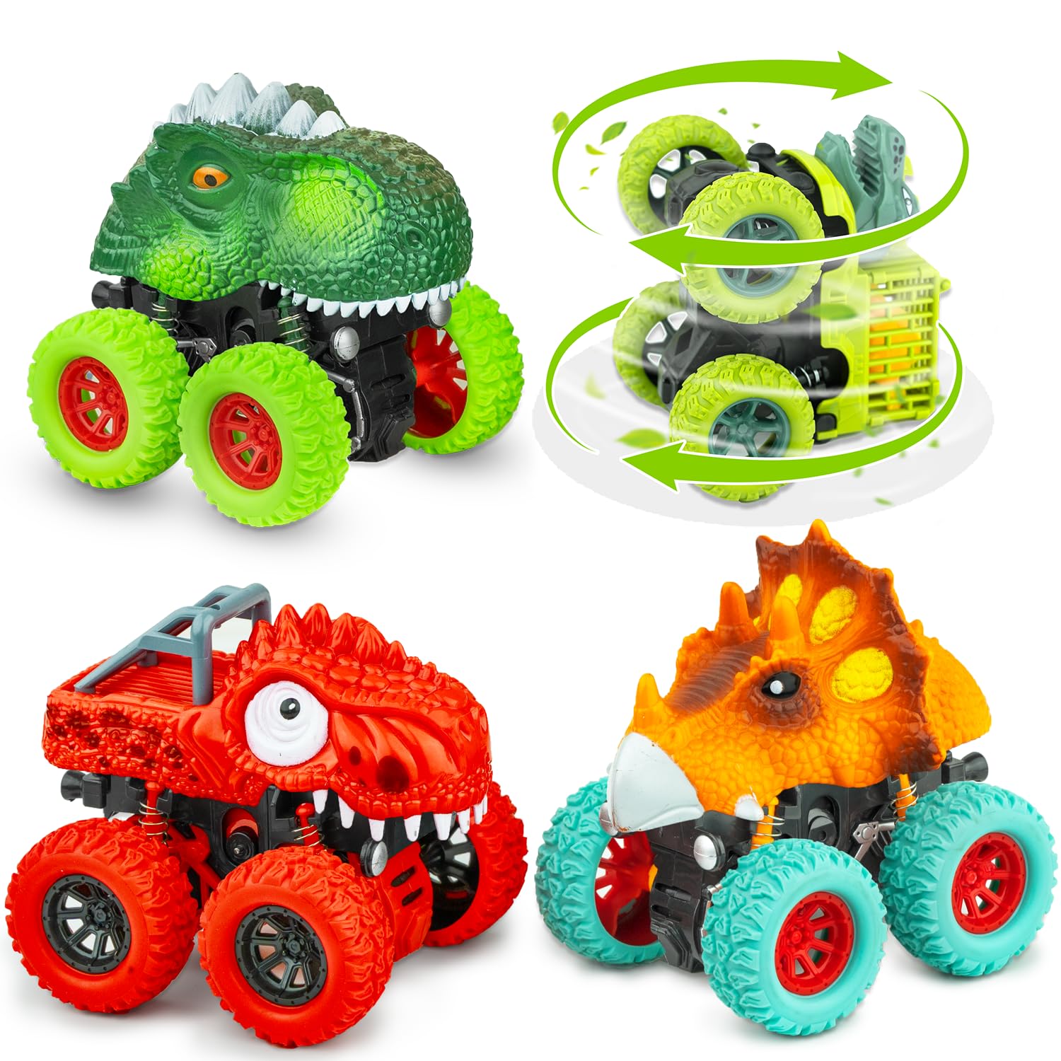 Beestech Dinosaur Toys for 2 3 4 5 Year Old Boys, Push & Pull Friction Powered Dinosaur Monster Truck Vehicles for Toddlers Pres