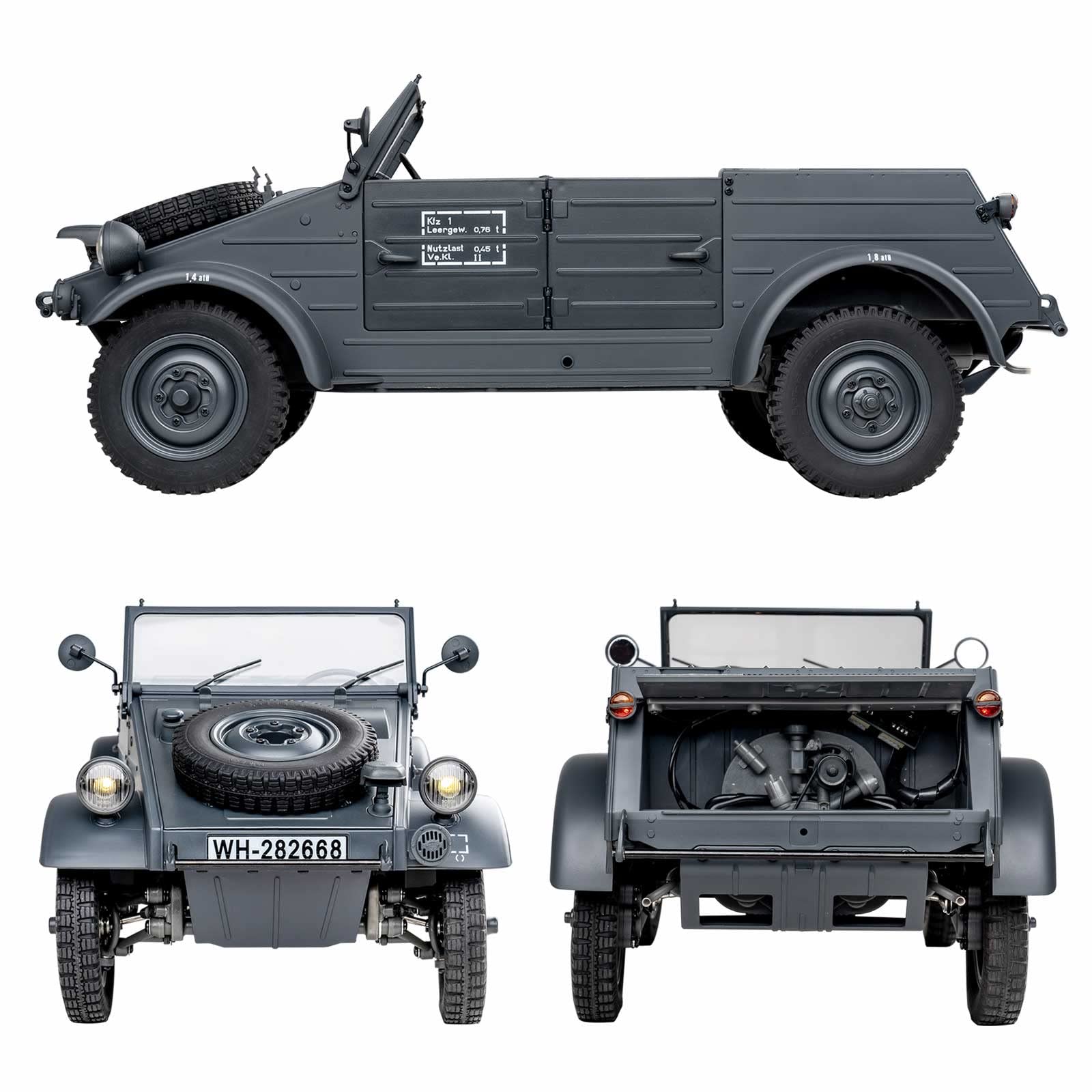 - Q: What materials are used in the construction of this RC car? A: The Type 82 Kubelwagen is primarily made of iron, ensuring durability and strength, while also incorporating full metal gears and drive shafts for enhanced performance.