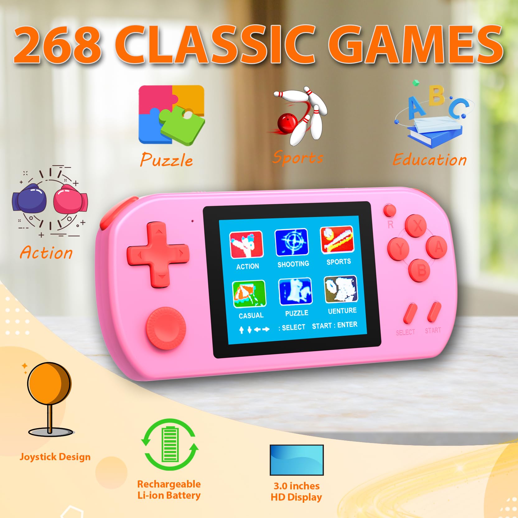 Beico Handheld Games For Kids Adults With Built In 268 Classic Retro Video Games,3.0'' Color Screen Rechargeable Portable Arcade