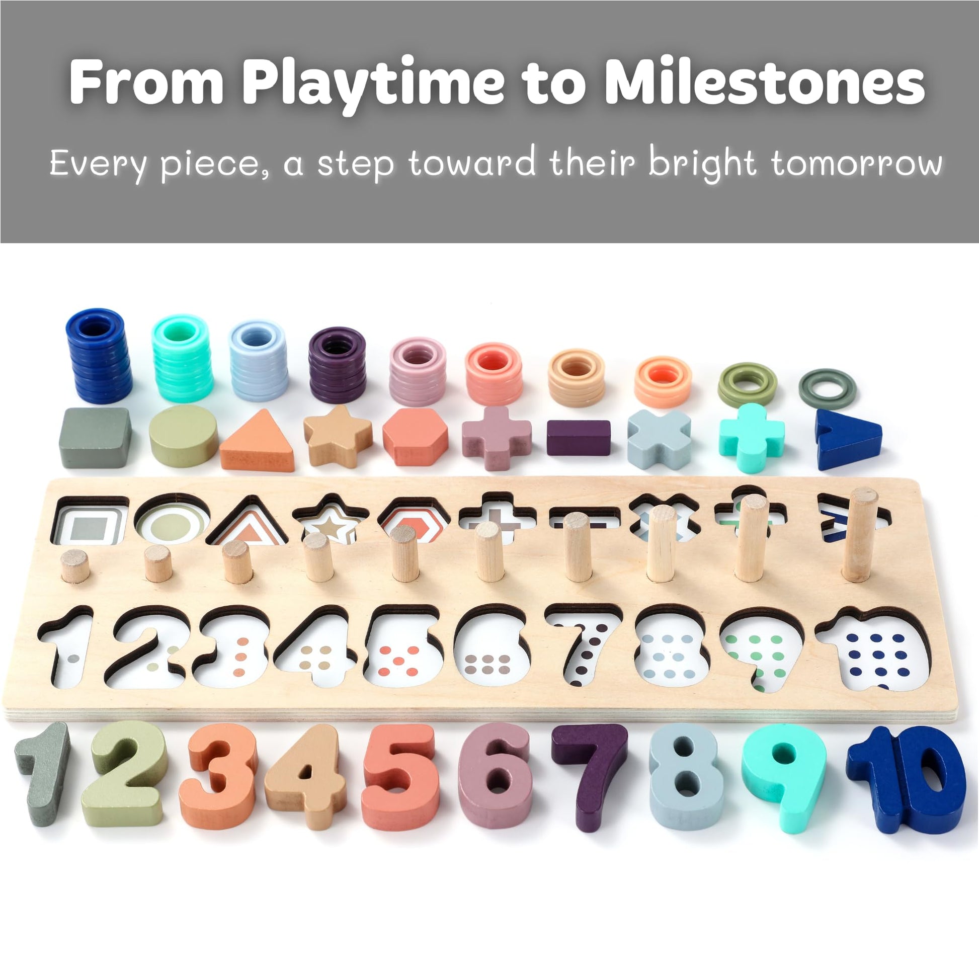 View compareBekilole Wooden Montessori Toys For Kids Number Puzzles Sorter Counting Shape Stacking Preschool Toys For Boy Girl Toddler Learn