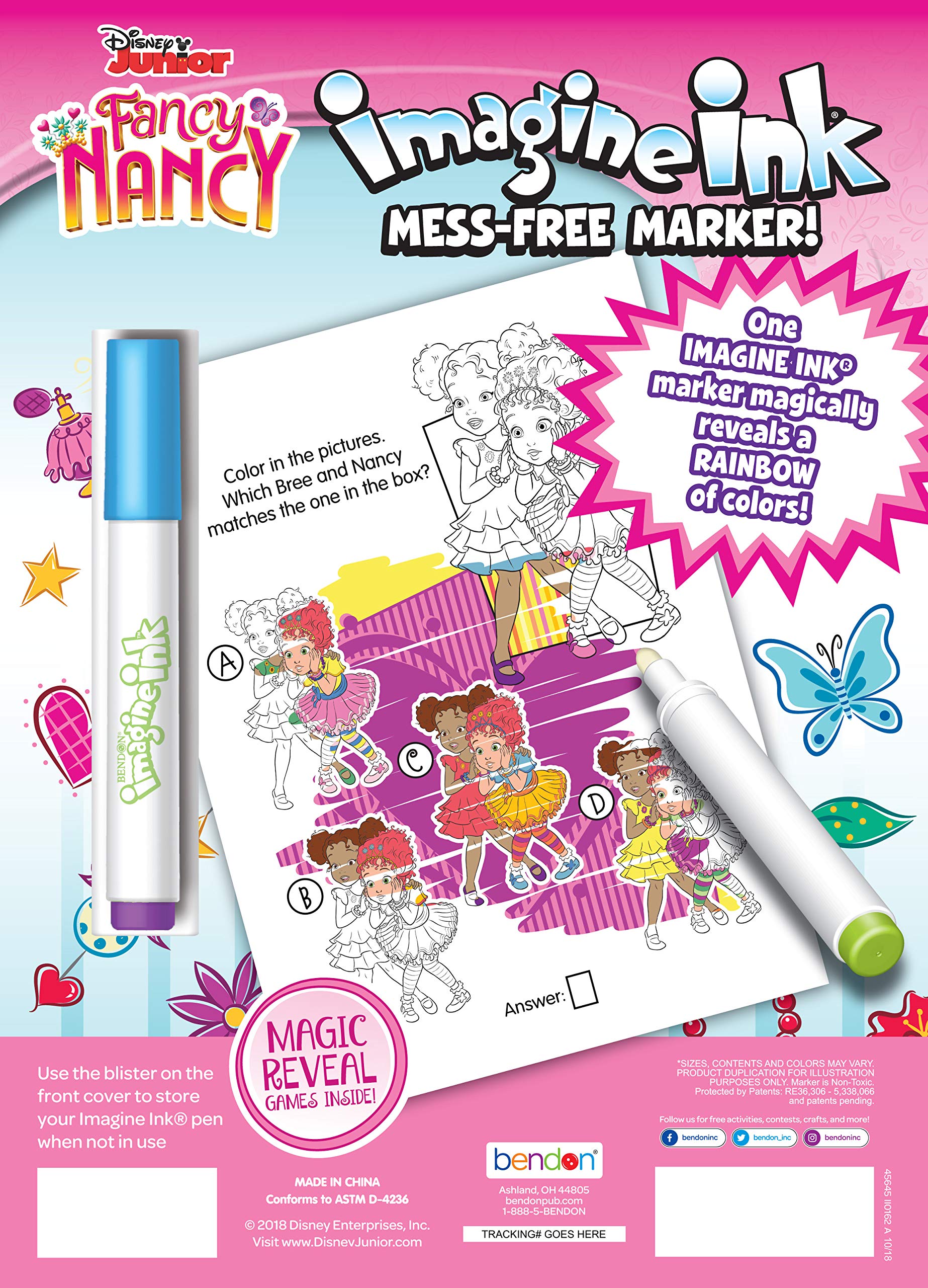 Watch a rainbow of colors appear like magic with Bendon Fancy Nancy Imagine Ink Magic Ink Coloring Book! Artists of all skill levels will love finding Nancy, Claire, and their friends hidden across 16 magic reveal pages. Now with bigger pages, there's even more to color!