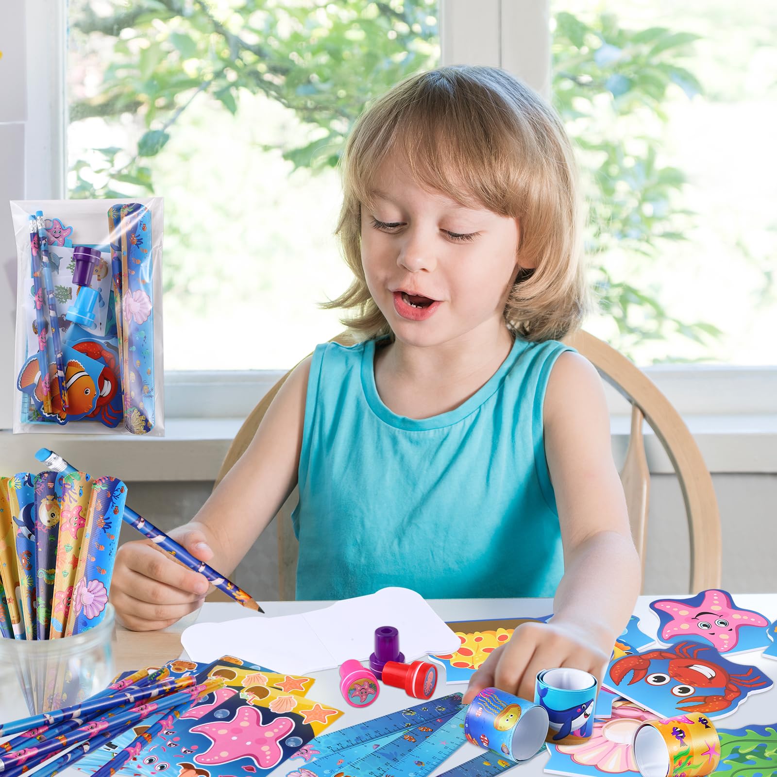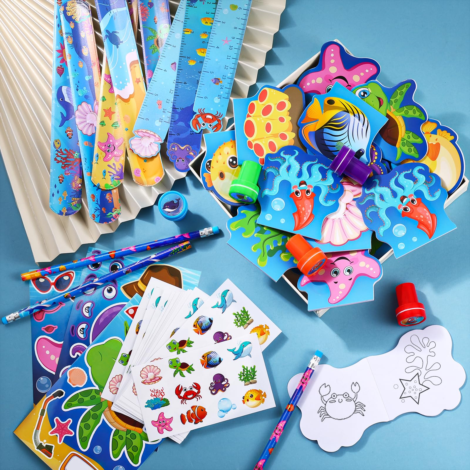 BenLouis 120Pcs Under the Sea Party Favors Ocean Animals Party Stampers Stickers School Stationery Bulk for Kids Sea Shark Birth