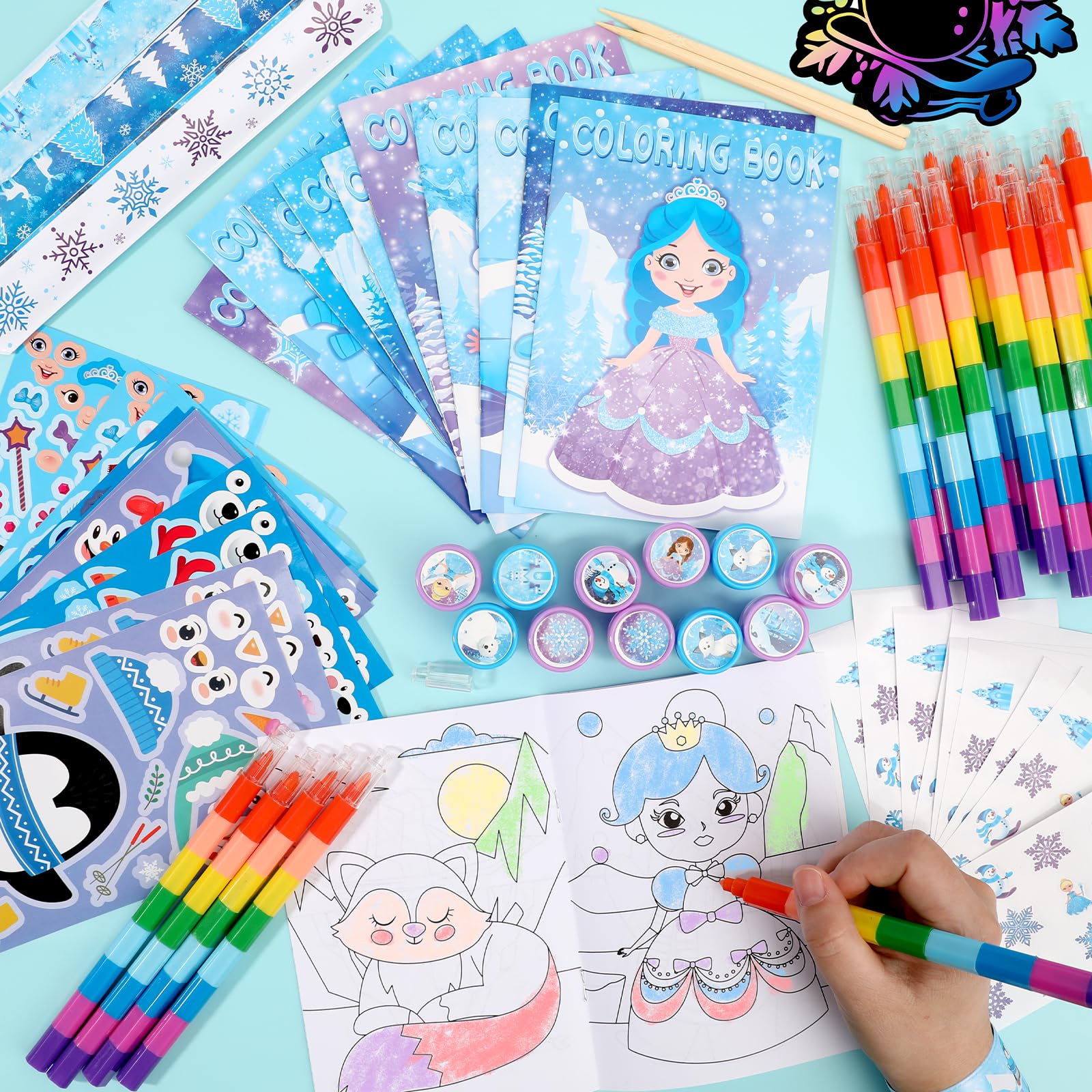 BenLouis 192pcs Frozen Party Favors Set for Kids Winter Snowflake Coloring Book Christmas School Classroom Gift Reward Prize Cra