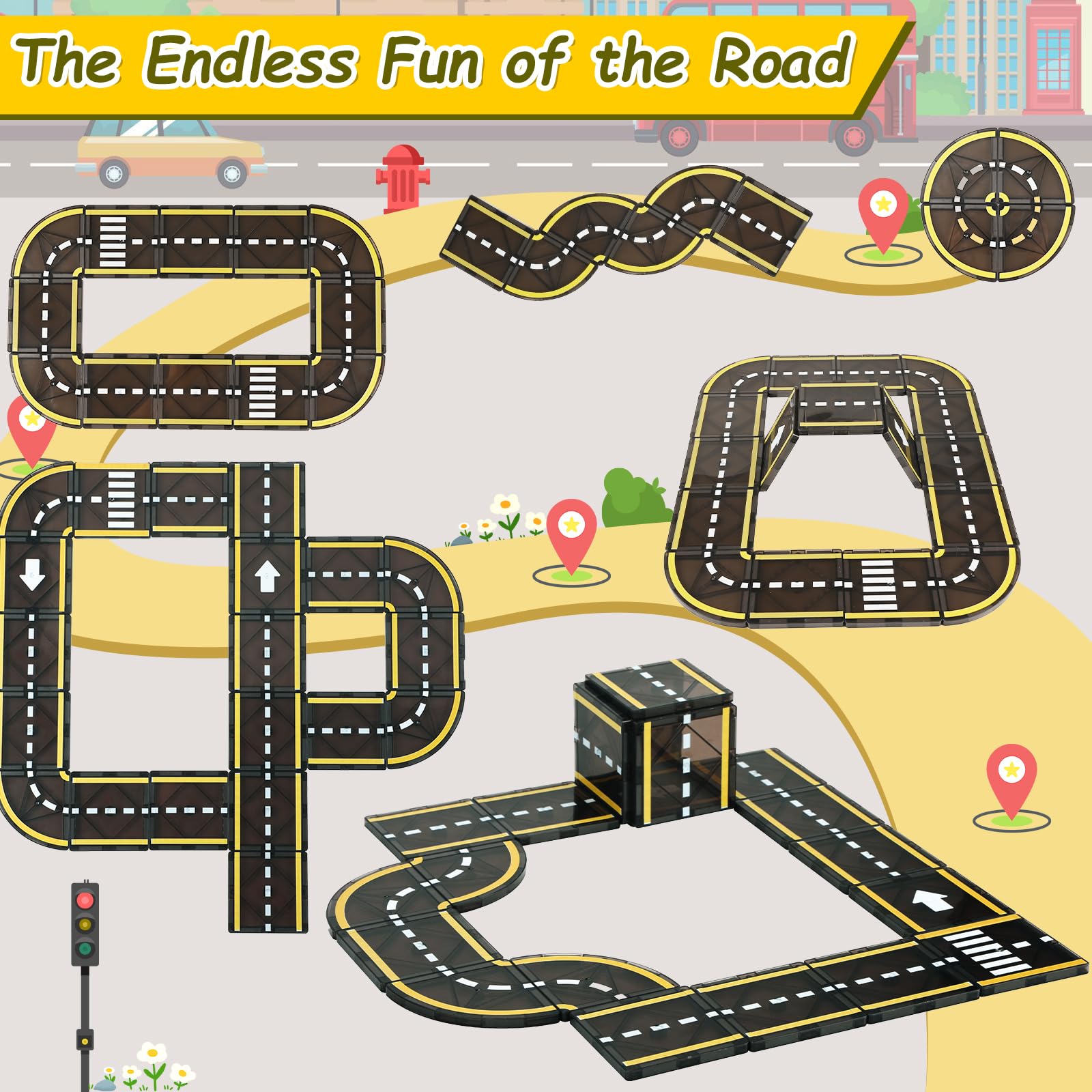Benoker Magnetic Tiles Road Set, Stem Magnet Building Blocks For Toddler Kids, Montessori Educational Toy Gifts For 3+ Year Old
