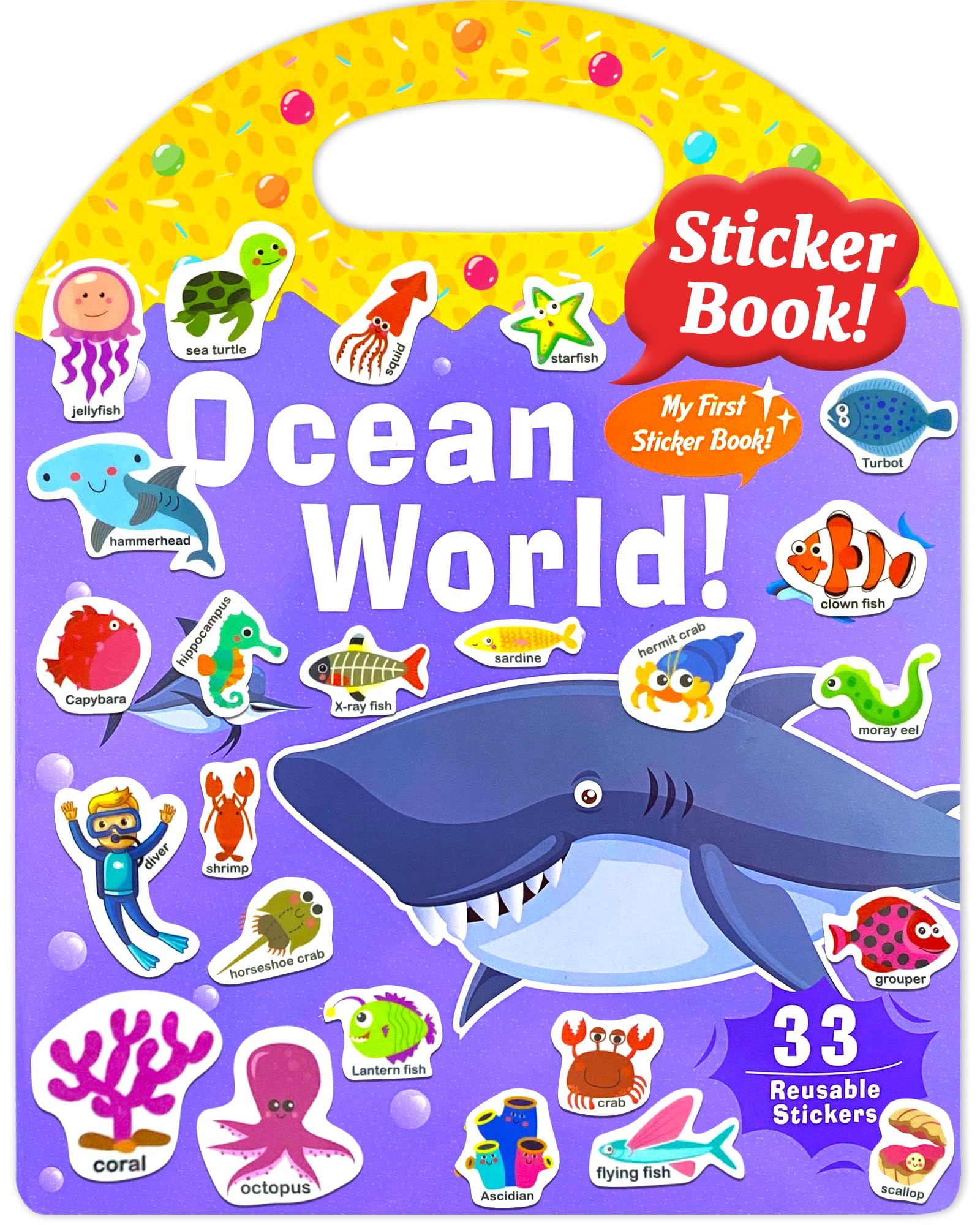 Benresive Reusable Sticker Book For Toddlers 2-4 Years, Fun Travel Stickers For Kids, Waterproof Sticker Books For Toddlers 1-3, Crafts Activities For Todddlers 1-3 2-4 3-5 - Ocean World