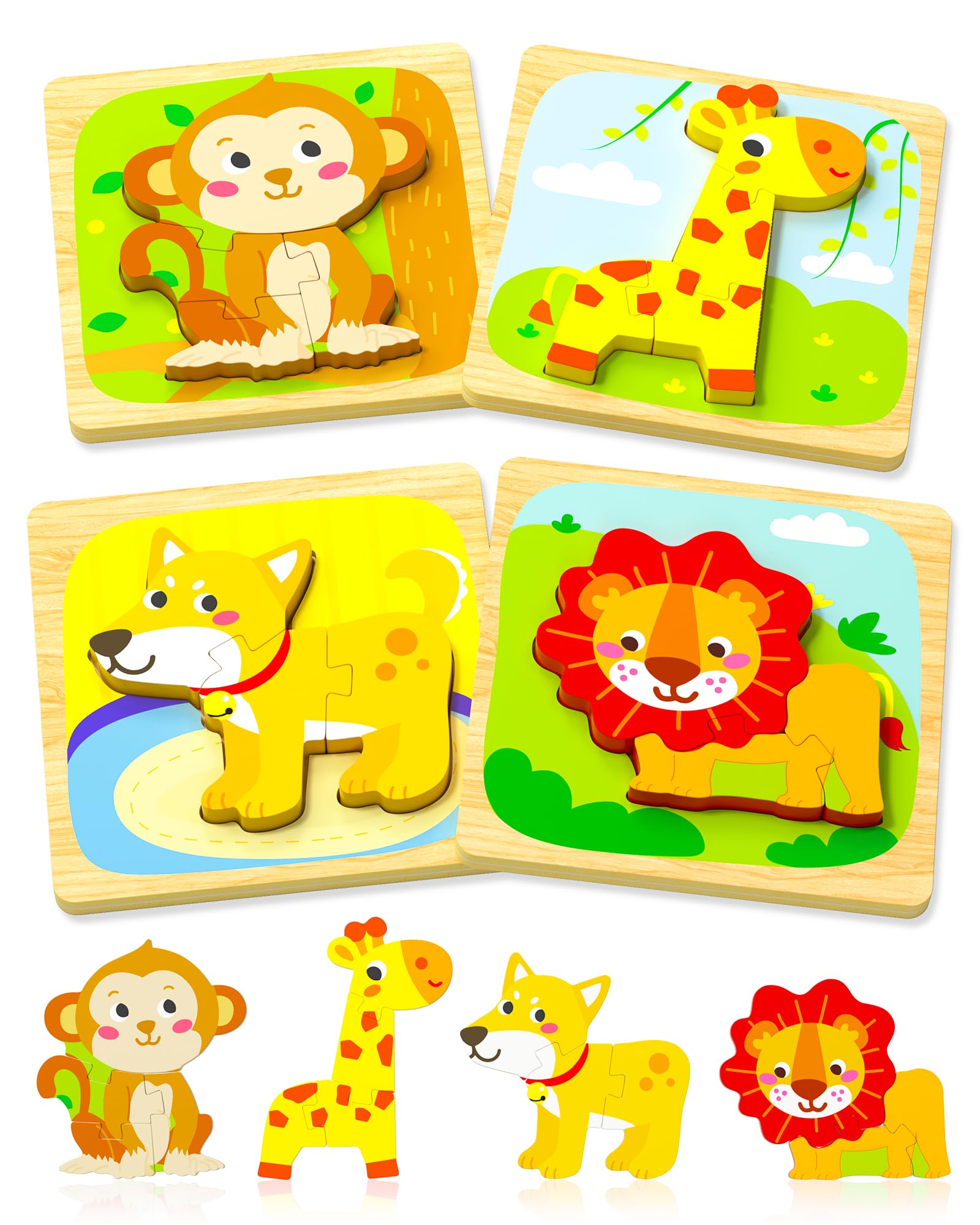 View compareBenresive Wooden Toddler Puzzles Ages 1-3, Montessori Toys For 1 2 3 Year Old Boys Girls, 4 Pack Animal Toddler Toys Gifts For 1 2 3 Year Old Boys Girls, Learning Educational Preschool Puzzles