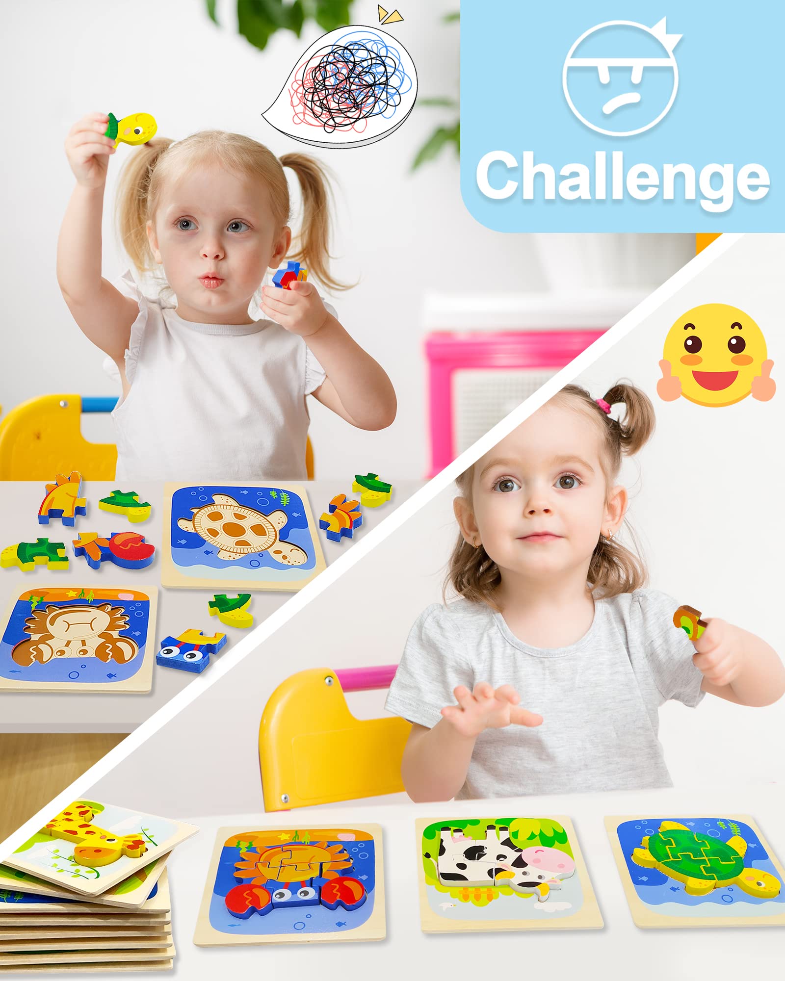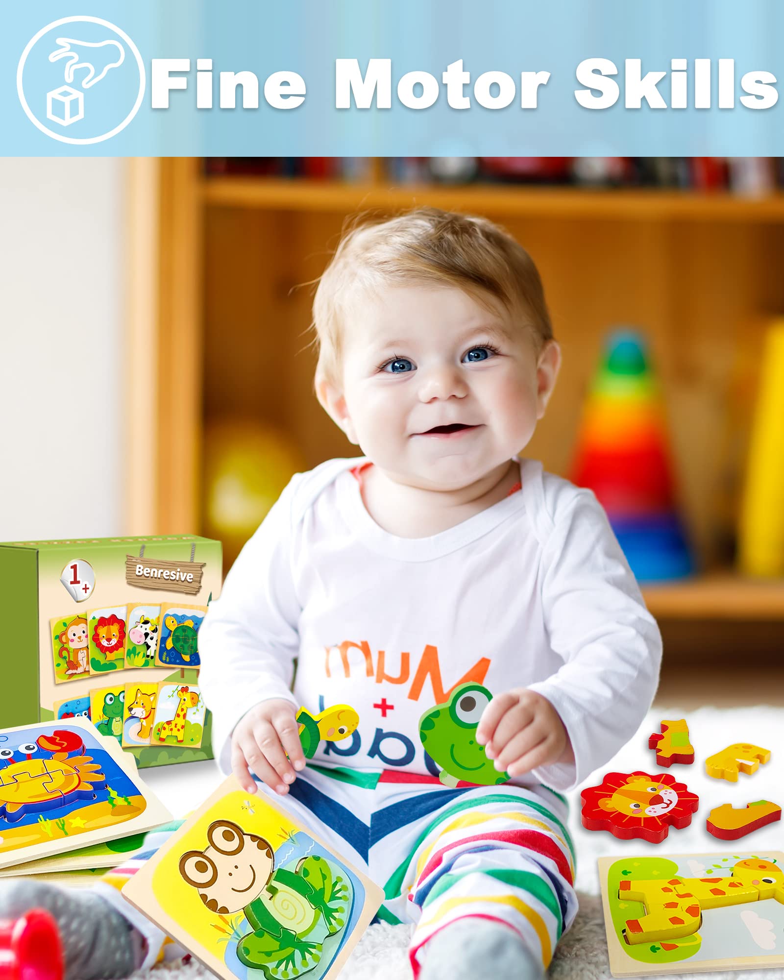 Benresive Wooden Toddler Puzzles Ages 1-3, Montessori Toys For 1 2 3 Year Old Boys Girls, 8 Pack Animal Toddler Toys Gifts For 1 2 3 Year Old Boys Girls, Learning Educational Preschool Puzzles