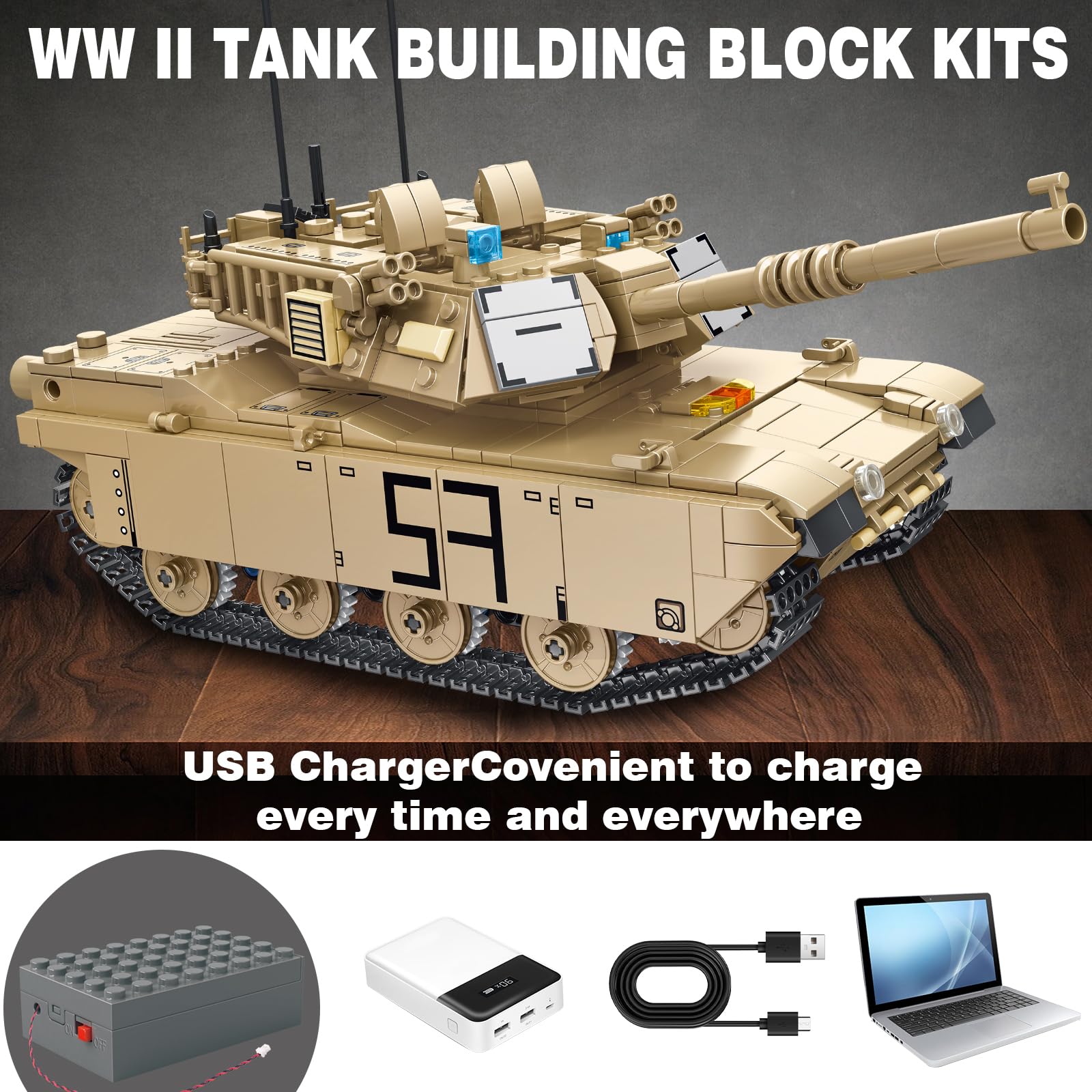 Bestmoment Military M1A2 Rc Tank Building Toys -1096 Pcs Ww2 Army Military Toys Building Blocks For Adults, World Of Tanks Build