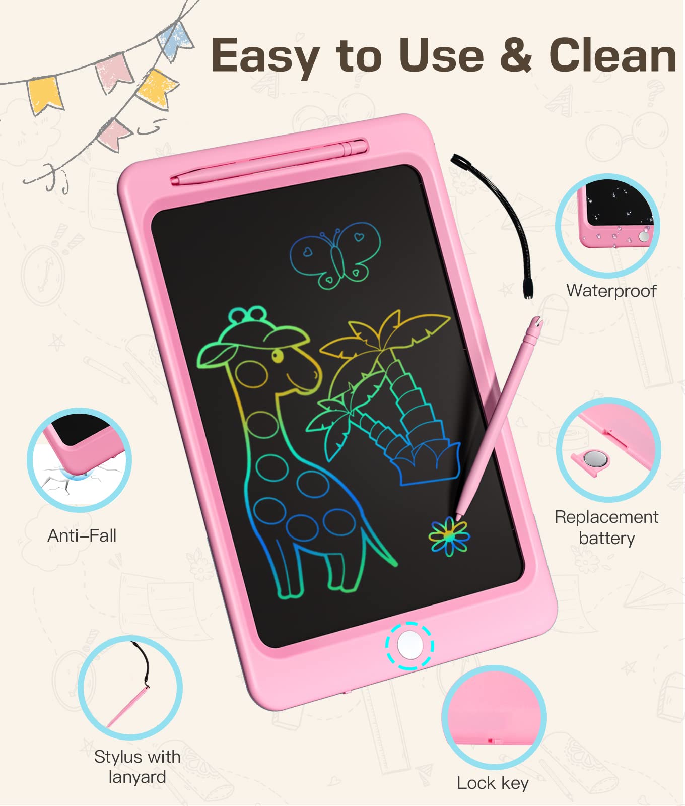Our Beydoa Lcd Writing Tablet For Kids Is A Educational Toy And Preschool Tool For Kids 2-8 Years Old To Painting, Counting, Spelling And Writing. It Adopts 2022 Pressure-Sensitive Technology And Smooth Writing. This 8.5-Inch And 12-Inch Lcd Colorful Screen Doesn'T Emit Blue Light, Radiation Or Glare, And It'S Created To Protect Toddlers' Eyesight Better. So, Kids Can Draw On This Doddle Board Toy Without Discomfort For As Long As They Want! It Is A Learning Writing Board For Kids Ages 3-8. It Also Can Be Used As A Electronic Doodle Board, Scribble Pad Or Baby Sensory Toy. An Ideal Present For Kids Homeschooling, Birthdays, Christmas, Valentine'S Day, Easter, Thanksgiving Day And Any Occasion!