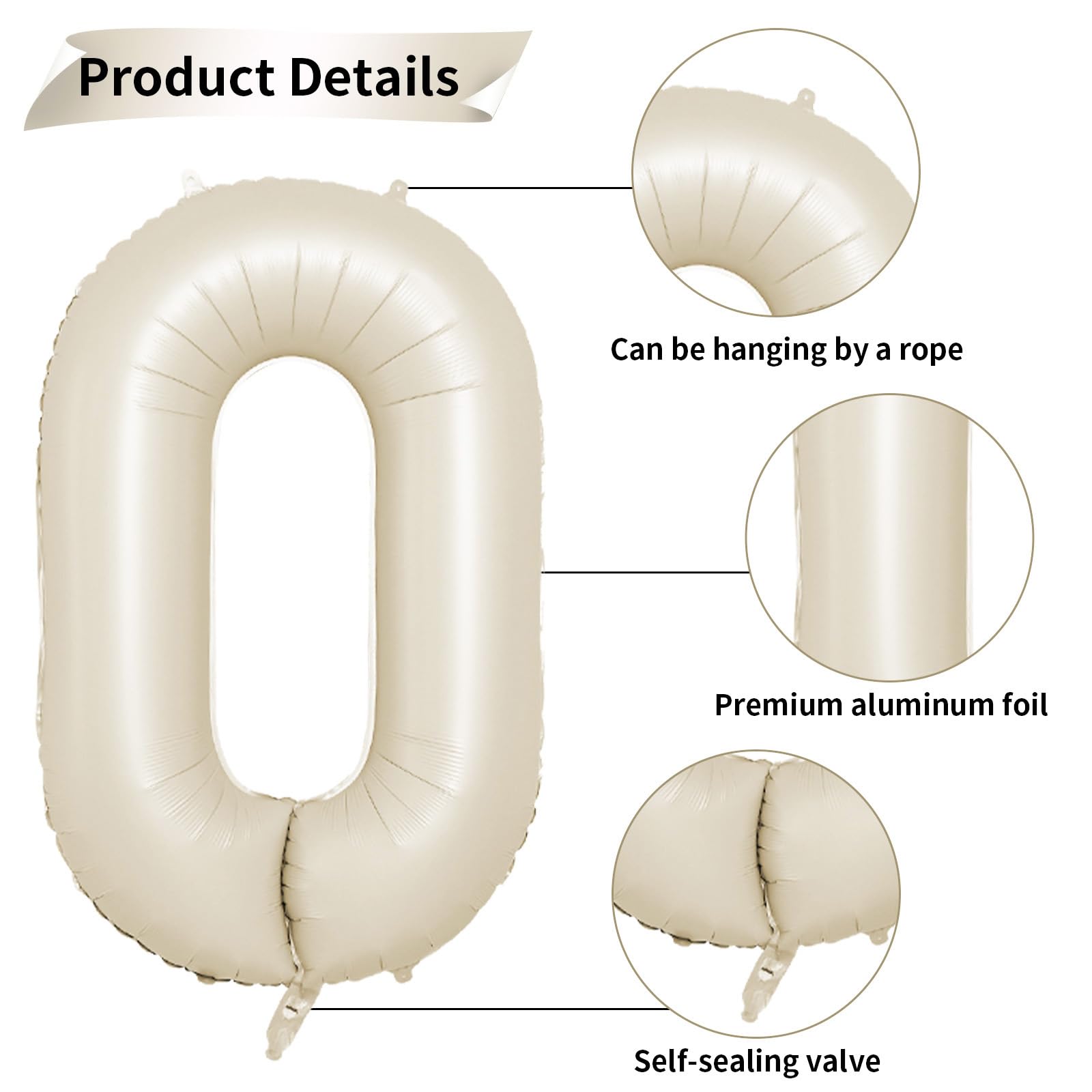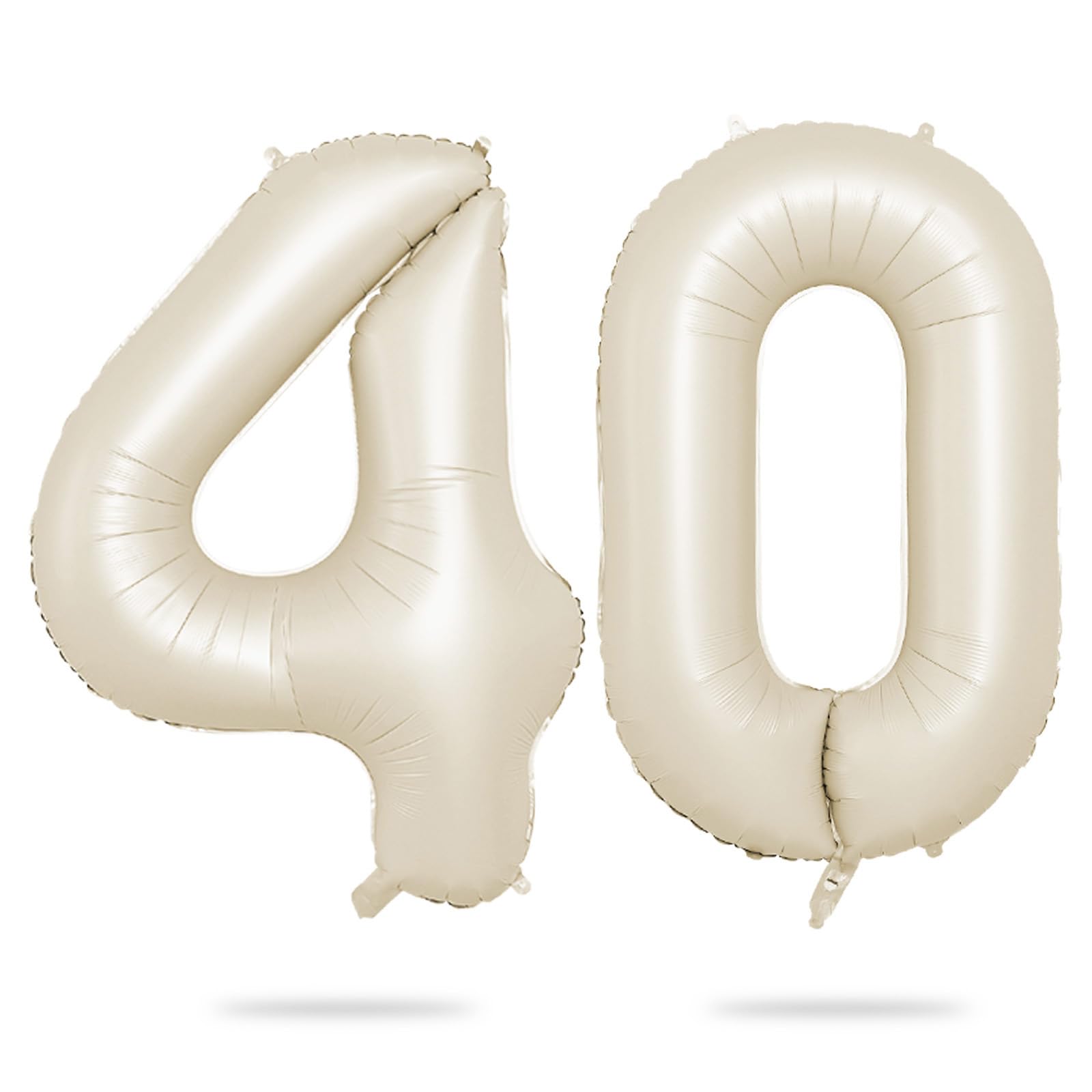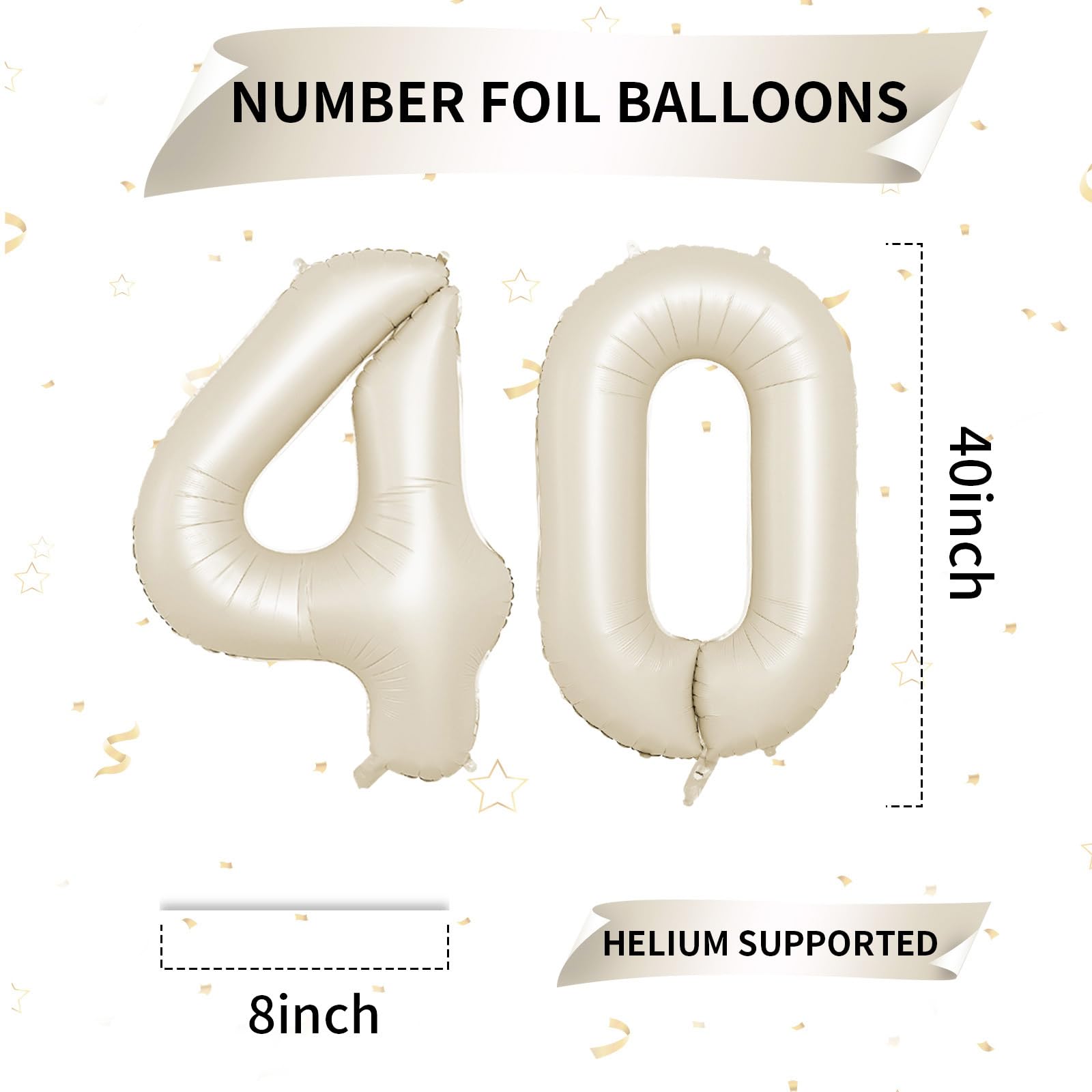 Biapian 40 Inch Cream Number 40 Balloon, 40Th Birthday Balloons, Big Digital 40 Beige White Giant 40 Foil Balloon Helium For Men