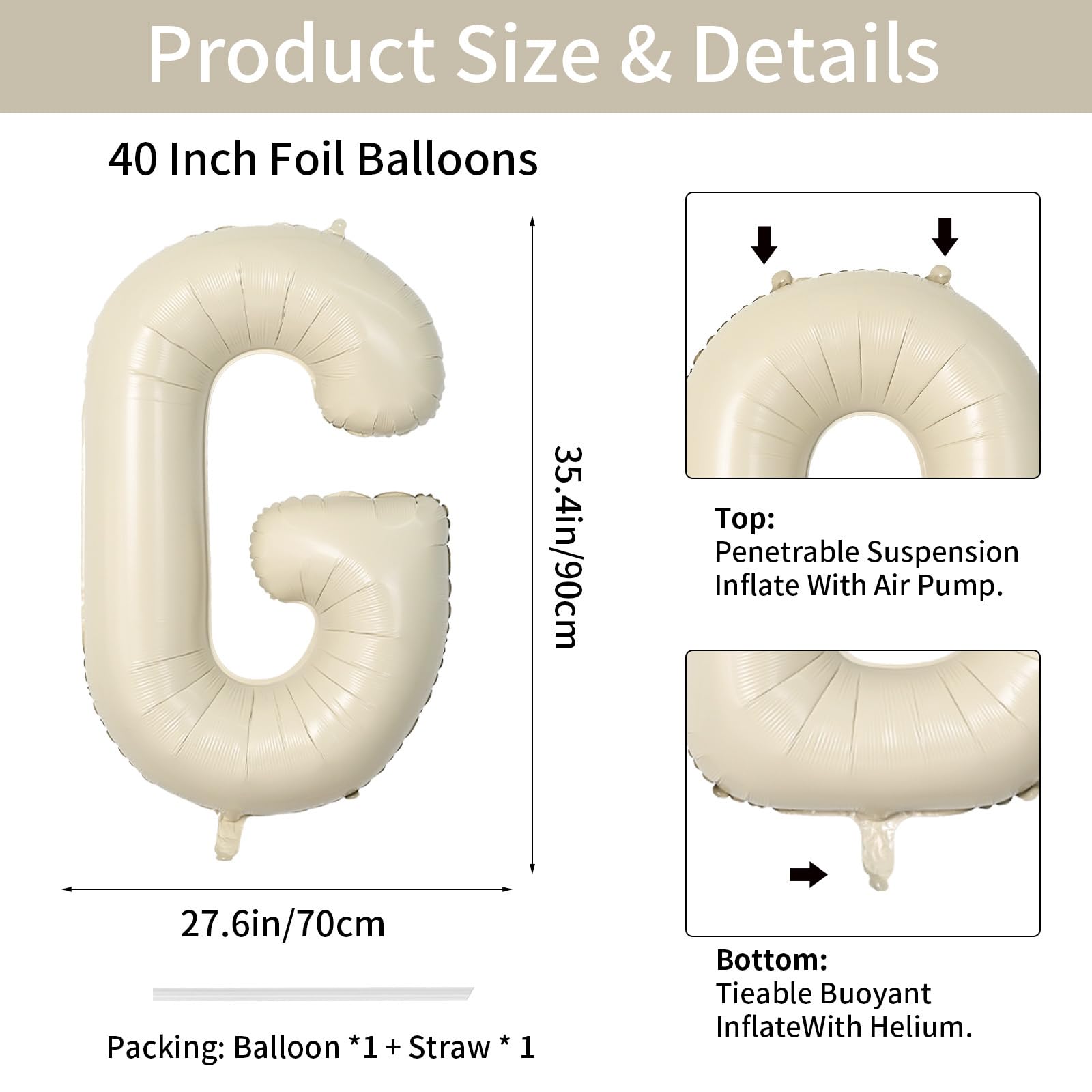 Biapian 40 Inch Letter G Balloons, Giant Cream G Foil Balloon, Big Single Alphabet A-Z Balloons, Beige Large Aluminum G Balloons