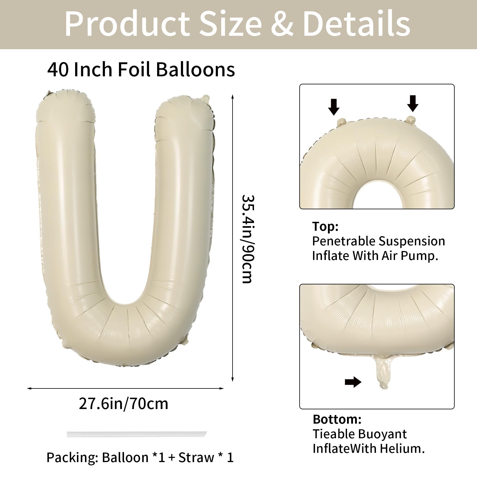 View compareBiapian 40 Inch Letter U Balloons, Giant Cream U Foil Balloon, Big Single Alphabet A-Z Balloons, Beige Large Aluminum U Balloons