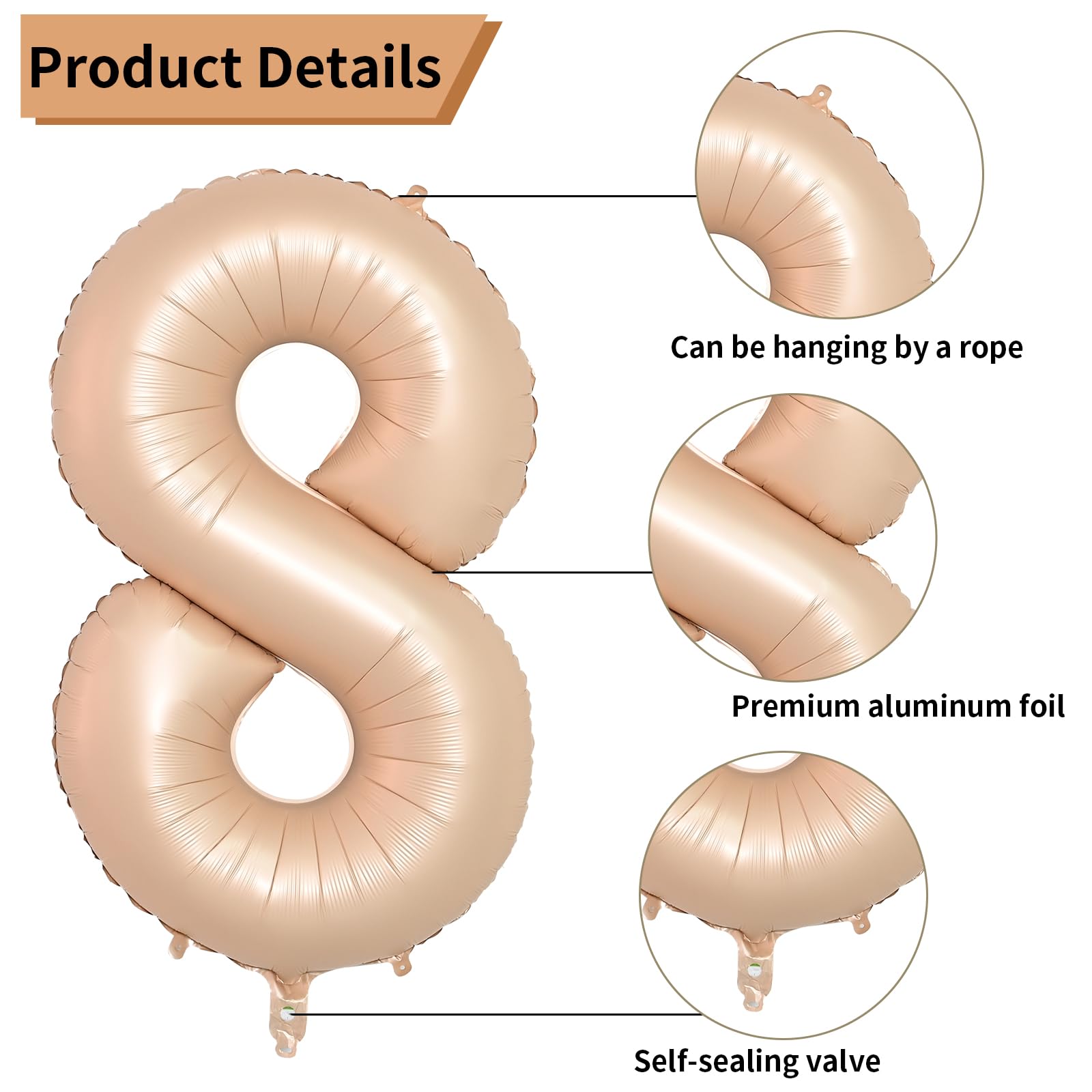 Number Balloons 8 Pack ?? Package Includes 2 X 40 Inch Caramel Number Balloons 2 X 18 Inch Cream Heart Balloons 2 X 18 Inch Light Brown Heart Balloons 2 X 18 Inch Brown Heart Balloons ?? Specification - Durable And Safe - Simple To Use - Made In High Quality Foil - Perfect For Any Theme Party, Birthday Party, Baby Shower, Wedding Party. ?? Perfect For Any Scene Pairing The Number Balloon With Heart-Shaped Balloons Of The Same Color, Creating The Highly Sought-After Ins Style That Serves As An Ideal Backdrop For 18Th Birthday And 18Th Anniversary Celebrations. Number Balloons Have Countless Combinations For Your Remarkable Events: Baby Shower Balloons, Gender Reveal Balloons, Graduation Balloons, Birthday Party Balloons, Valentines Day Balloons, New Year Balloons, Halloween Balloons, Christmas Balloons, Ect. ?? Creating The Perfect Foil Decorations 1. You Can Use These Number Heart Balloons To Mix And Match With Other Colors. 2. We Offer Number Balloons From 0-9 For Your Selection, And You Can Combine Two Sets To Create Your Desired Number. ?? How To Use Foil Balloons 1.These Foil Balloons Can Be Filled With Air Or Helium. 2.The Valve Seals Automatically When Inflated Without The Need For An Extra Knot, And The Internal Gas Can Be Released With A Plastic Straw 3.For A Floating Effect, They Can Be Inflated With Helium. ?? Warm Tips 1. Don'T Blow Up The Chrome Foil Balloon Too Much. The Balloon Can Be Inflated With Helium And Air, Just Fill In 85%-90%. 2. Avoid Sun Exposure, Sharp Objects, Excessive Friction. 3. There Will Be A Certain Color Difference Before And After The Balloon Is Inflated, And The Effect Is Different Under Different Light. 4. Due To The Display Of The Monitor, The Color May Be Slightly Different From The Actual Item.