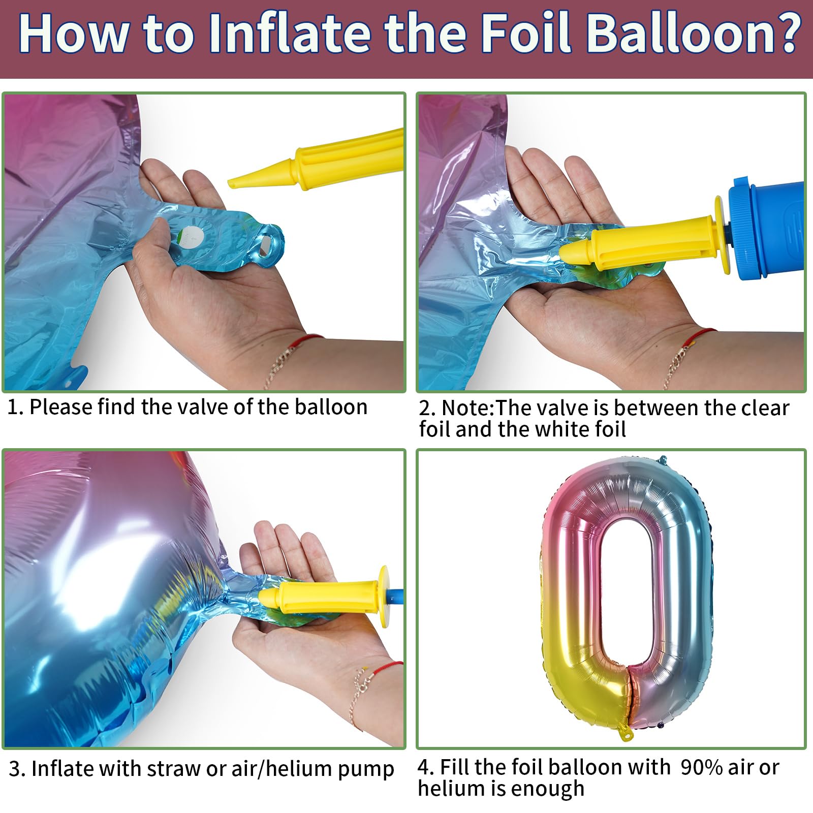 - Q: What is included in the Biapian 40 inch Rainbow Number 0 Balloon set? A: The Biapian set includes 1 x 40 inch gradient number 0 balloon, 2 x 18 inch gradient heart balloons, 2 x 18 inch yellow heart balloons, 1 x 18 inch teal blue heart balloon, and 1 x 18 inch pastel pink heart balloon, totaling 7 pieces.