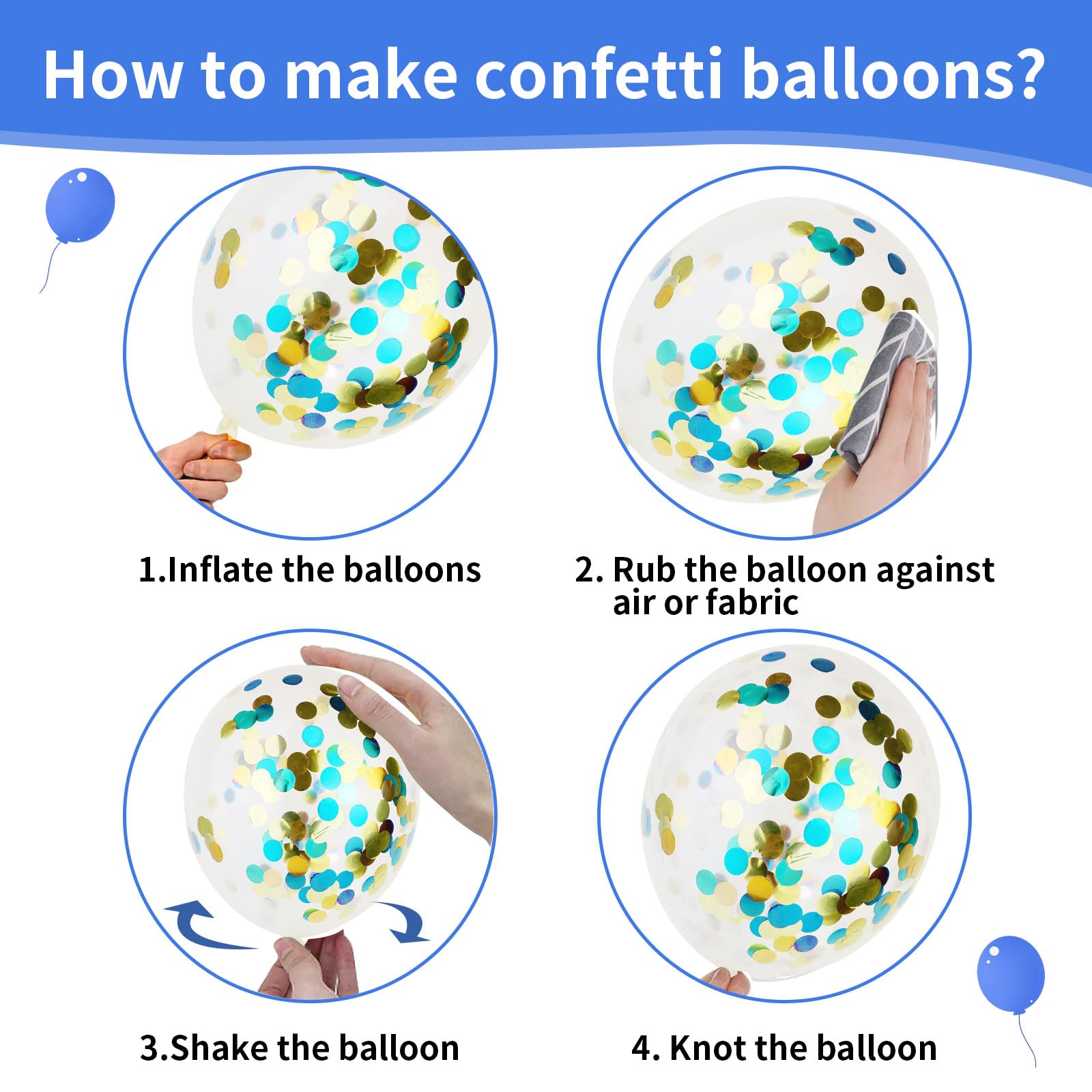 - Q: How can I inflate the Biapian balloons and ensure the confetti sticks inside? A: You can inflate the Biapian balloons with either air or helium. To make the confetti adhere to the inner surface, gently rub the inflated balloon with a dry towel. If using helium, lightly spritz some water inside the balloon before inflating to prevent the confetti from settling at the bottom.