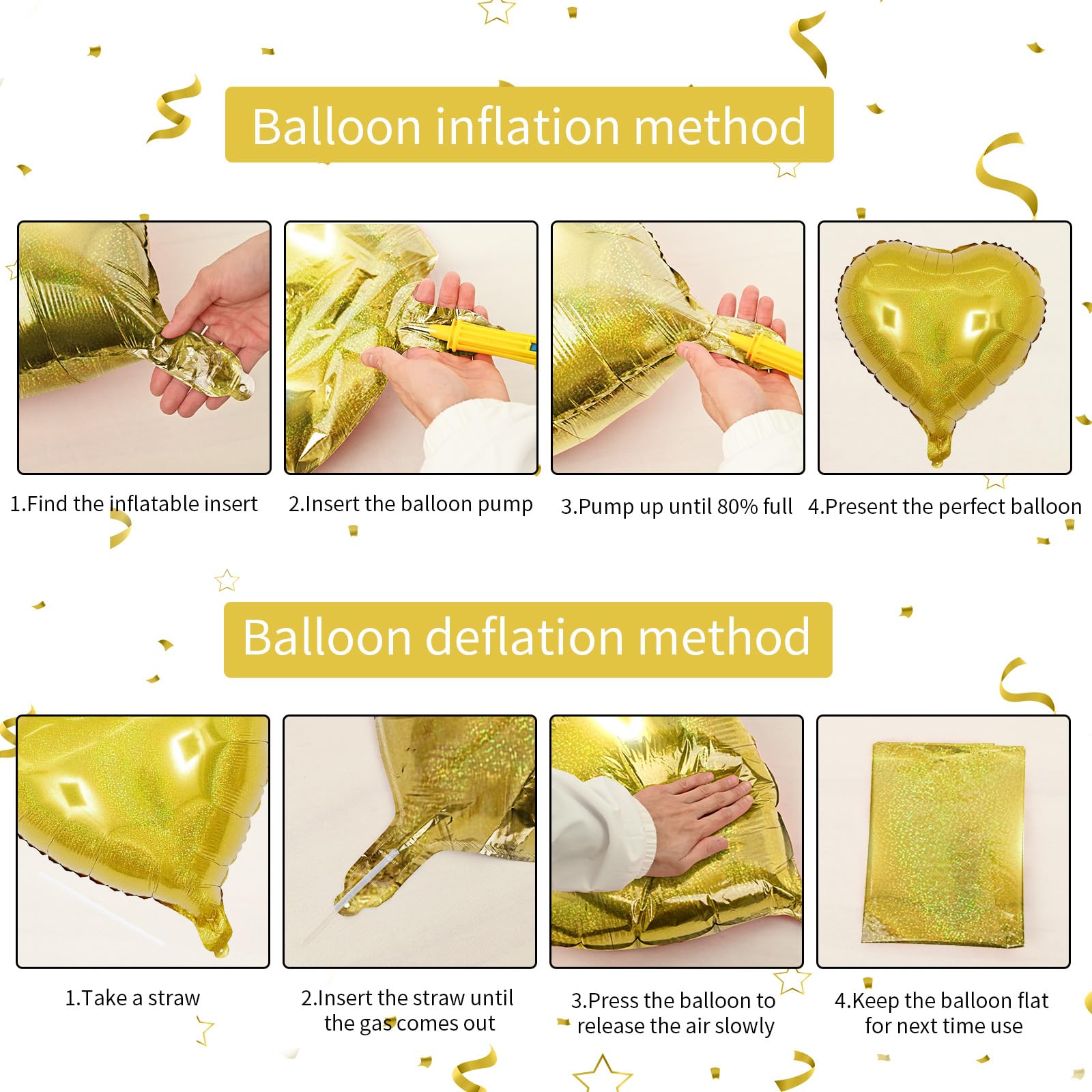 - Q: How do I properly inflate the gold heart balloons? A: To inflate the gold heart balloons, you can use either air or helium. It is recommended to fill them to about 85%-90% capacity to prevent bursting. The valve seals automatically once inflated, and you can deflate them using a plastic straw for reuse.