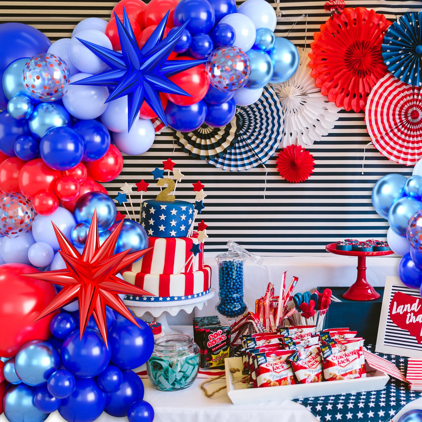 Biapian Red And Blue Balloon Garland Arch Kit, 111 Pcs Red Blue Confetti Balloons Baby Blue Metallic Blue Latex Balloons Foil St