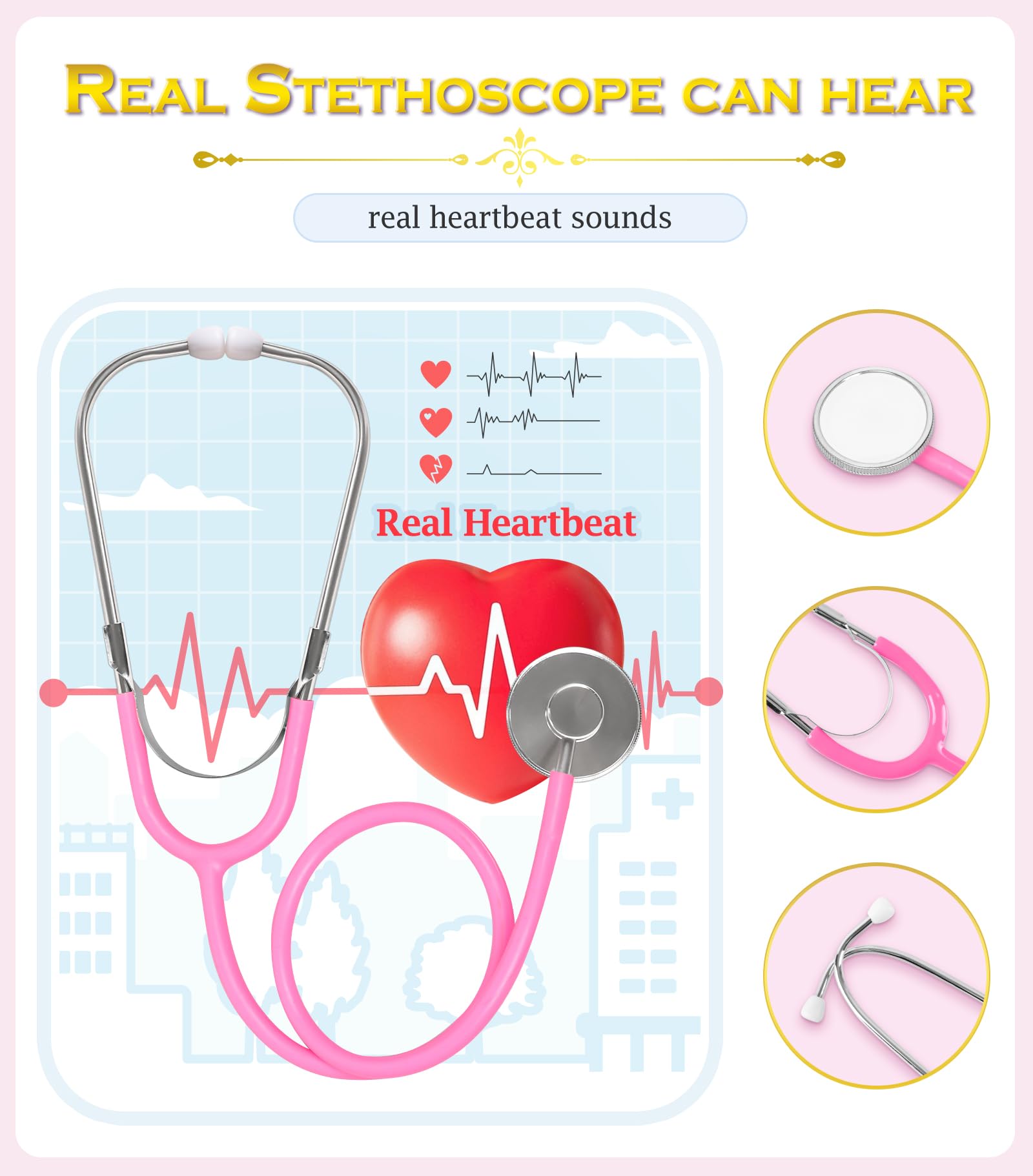 Doctor Costume for Kids Scrubs for Girls Boys with Lab Coat, BIBUTY Doctor Dress Up with Real Stethoscope, Halloween Costumes for Girls Doctor Kit for Kids Career Day Costume, Toys Gifts for 5-8 Kids