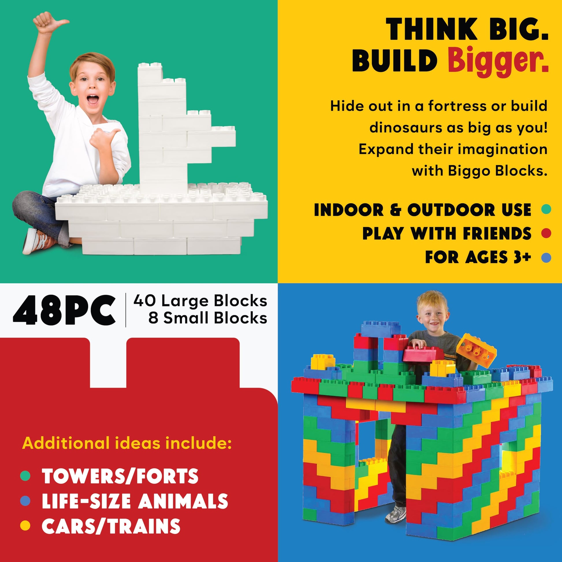 View compareBig Blocks For Kids Ages 4-8 - Indoor & Outdoor Blocks Kids Games - White Large Building Blocks - 48 Pc