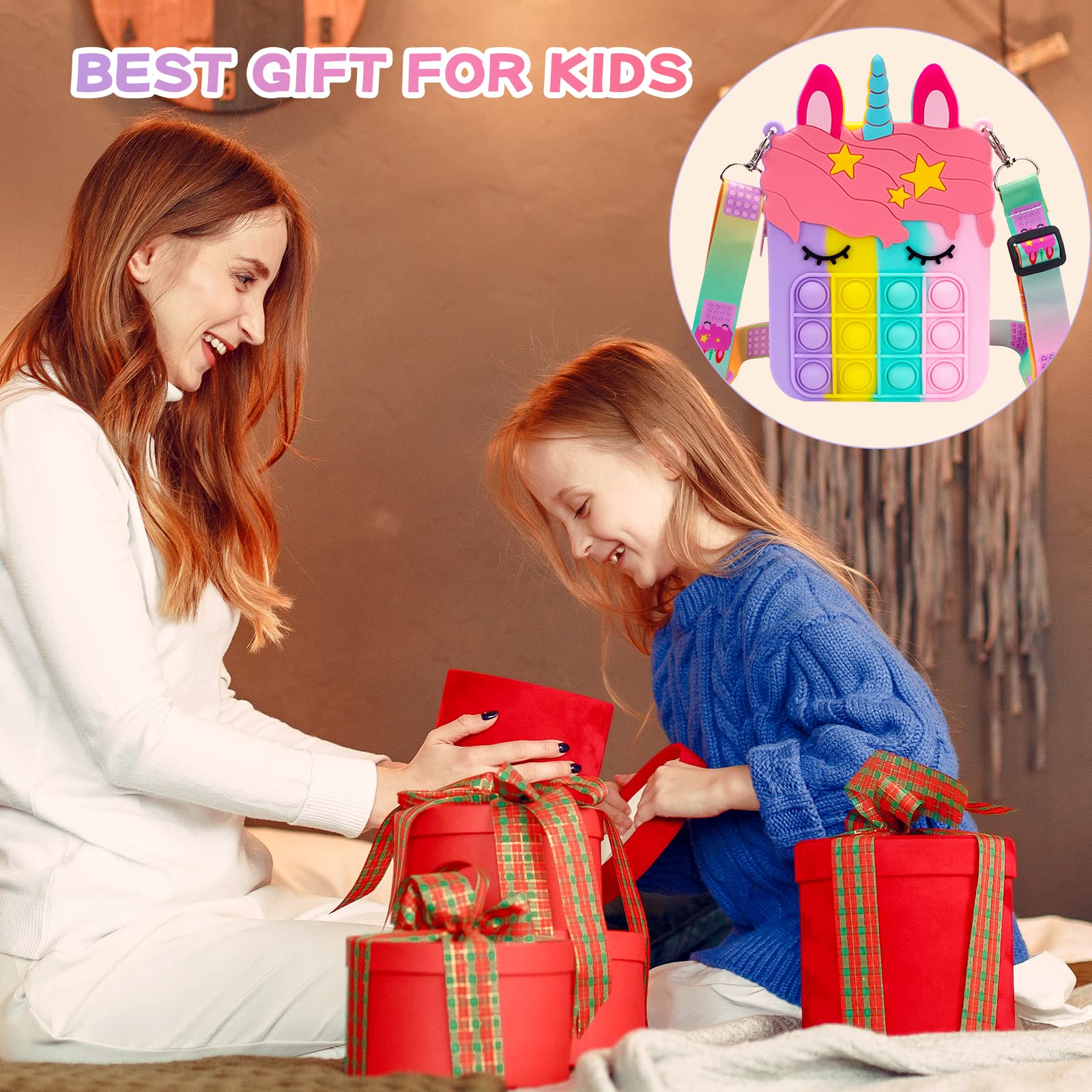 Big Pop Purse Unicorn Pop Purse for Girl Pop Bag with Unicorn Pop Toy Shoulder Bag Fidget Toys Pop Fidget Backpack Toy for Kids Backpack Silicone Bag Pop for Xmas Gift Girls