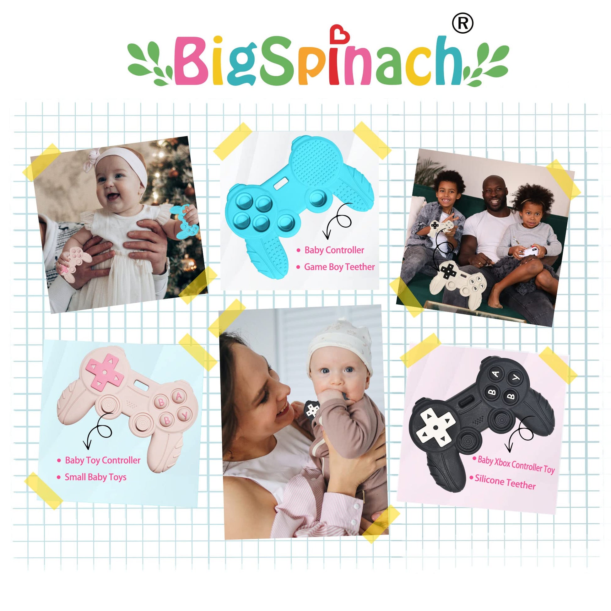 • Q: What age is the BIGSPINACH Baby Game Controller Teether Toy suitable for? A: The BIGSPINACH Baby Game Controller Teether Toy is designed for infants and toddlers, typically suitable for ages 0 to 3 years. It provides a safe and engaging way for young children to explore textures and develop motor skills.