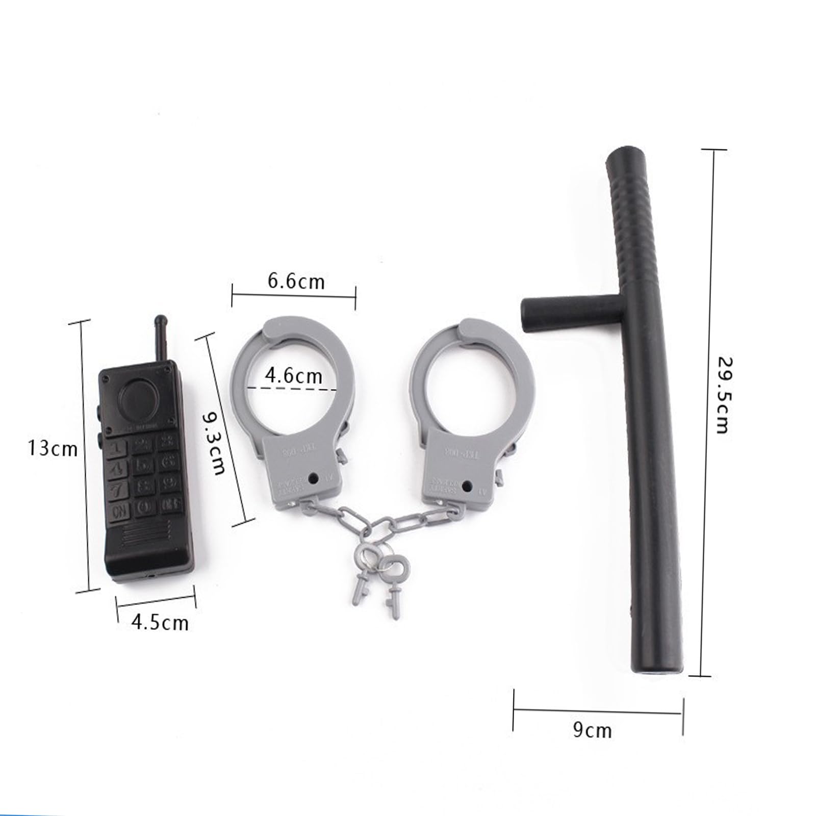Description This awesome police role play set is fun and has a ton of variety. It's easy to enforce the law of the land when you have the proper equipment. Your little police officer will love the handcuffs, walkie talkie and baton. Features - Color: As shown. - Material: Plastic. - Package Size: 39x20cm / 15.4x7.9inch(LxW). - Fun police role play set. - Role play a police officer. - Realistic Looking. Premium Quality. Super Strong and Durable. - Help to know about social job, Encourages your child to problem solve, practice self expression and social interaction in imaginative play. Package Including 1 x Walkie Talkie 1 x Police Baton 1 x pair of Handcuffs