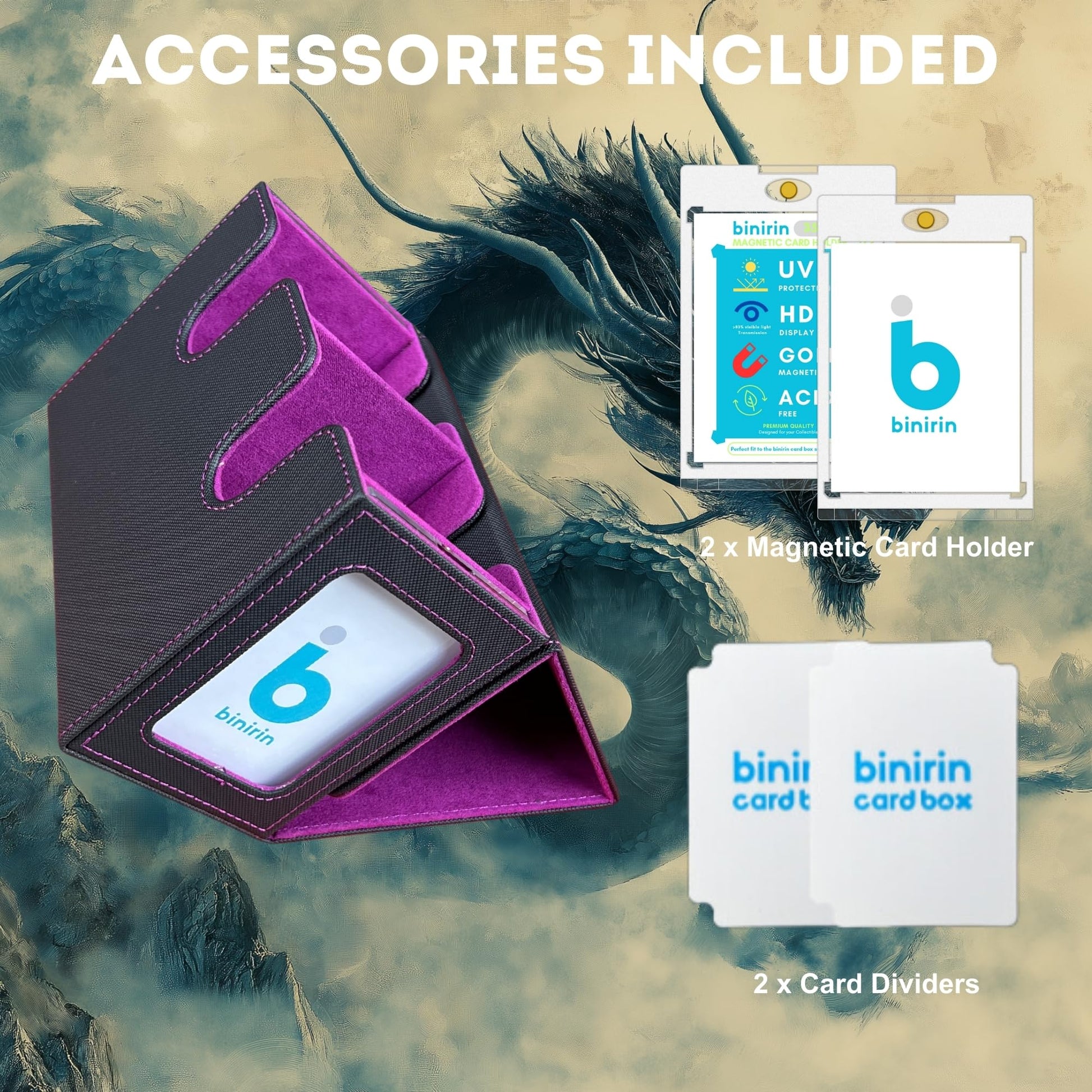 Binirin Deck Boxes Offer The Best Protection For Your Trading Cards. Made From Our Non-Slip, Water-Resistant Diamond Texture Material On The Outside With A Soft-Touch Microfiber Lining Inside. Protect Your Cards From Dinks, Dents And Scrapes. Keep Your Valuable Cards In Mint Condition.