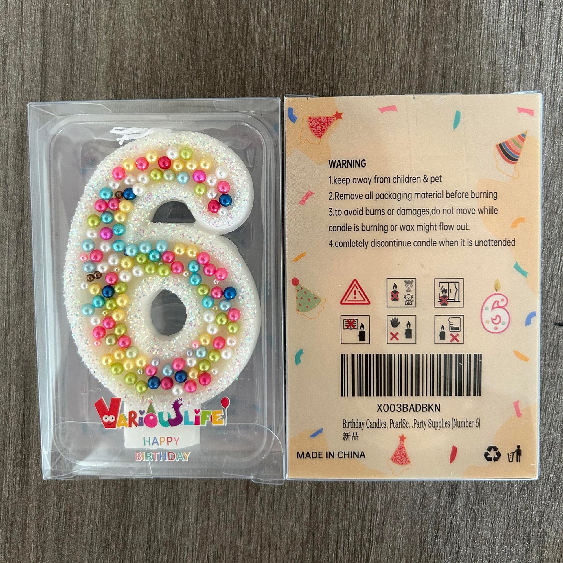 Birthday Candles, Pearl Sequin Number Candle Party Supplies (number-6)