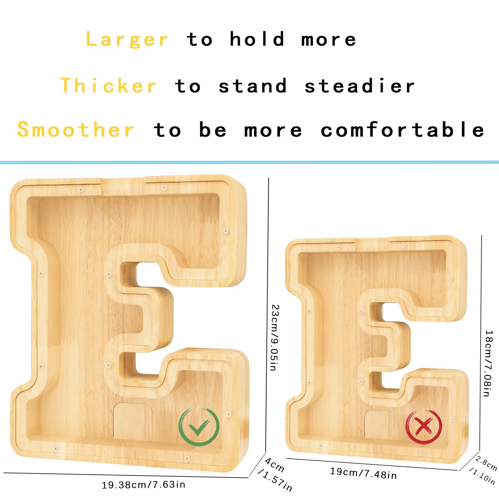 View compareBitreeworks Letter Piggy Bank, Personalized Wooden Coin Banks, Large Wood Money Peny Bank for Adults (9'', Alphabet E)