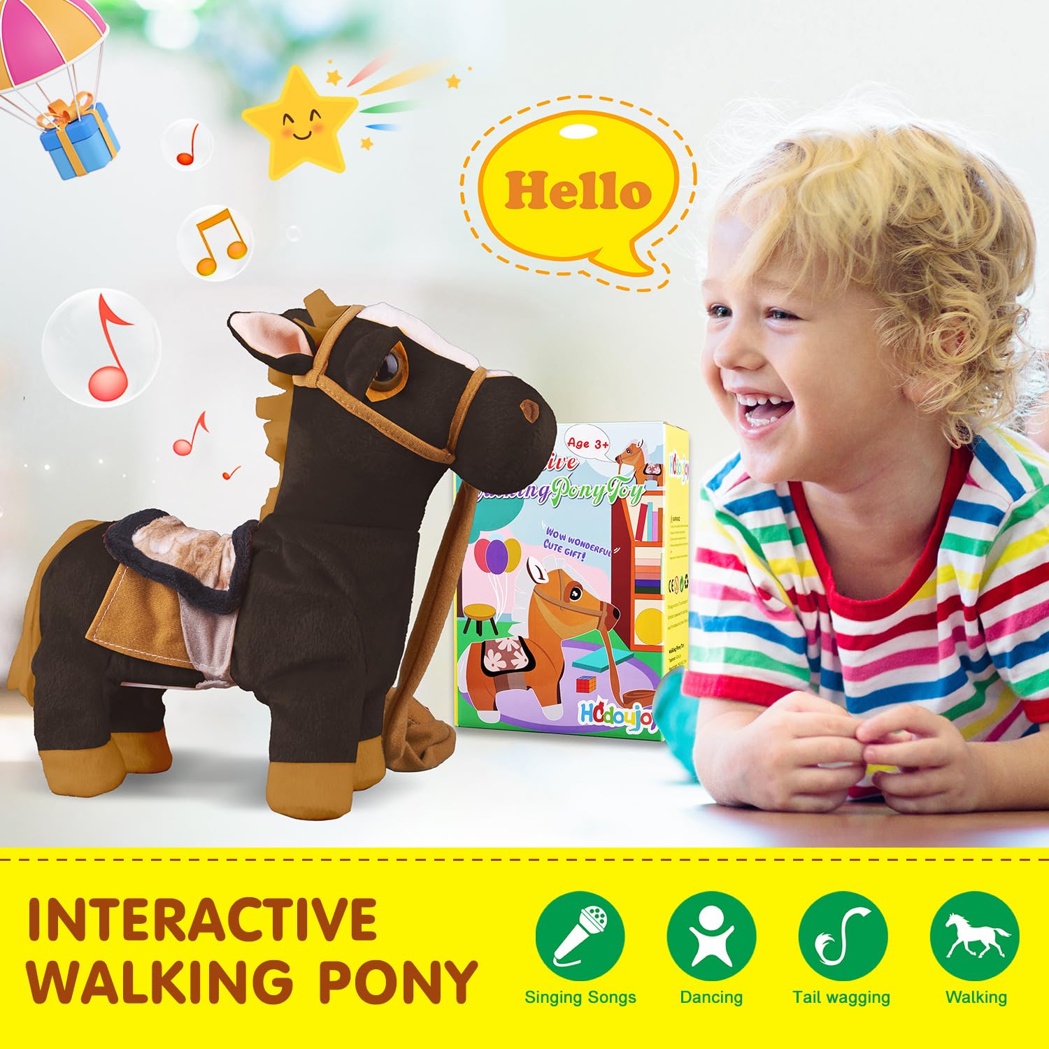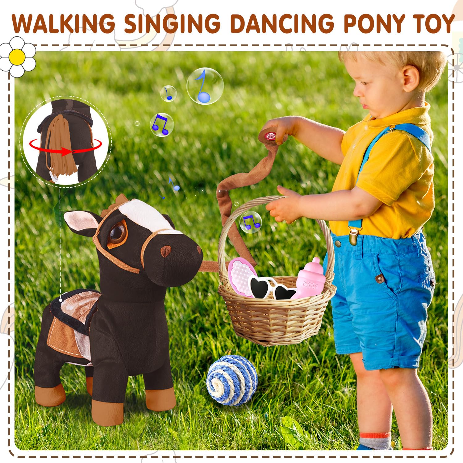 View compareBlack Walking Pony Plush Interactive Pony Toy Singing Dancing Musical Realistic Pony, Stuffed Shaking Leash Horse Toy Head Butto