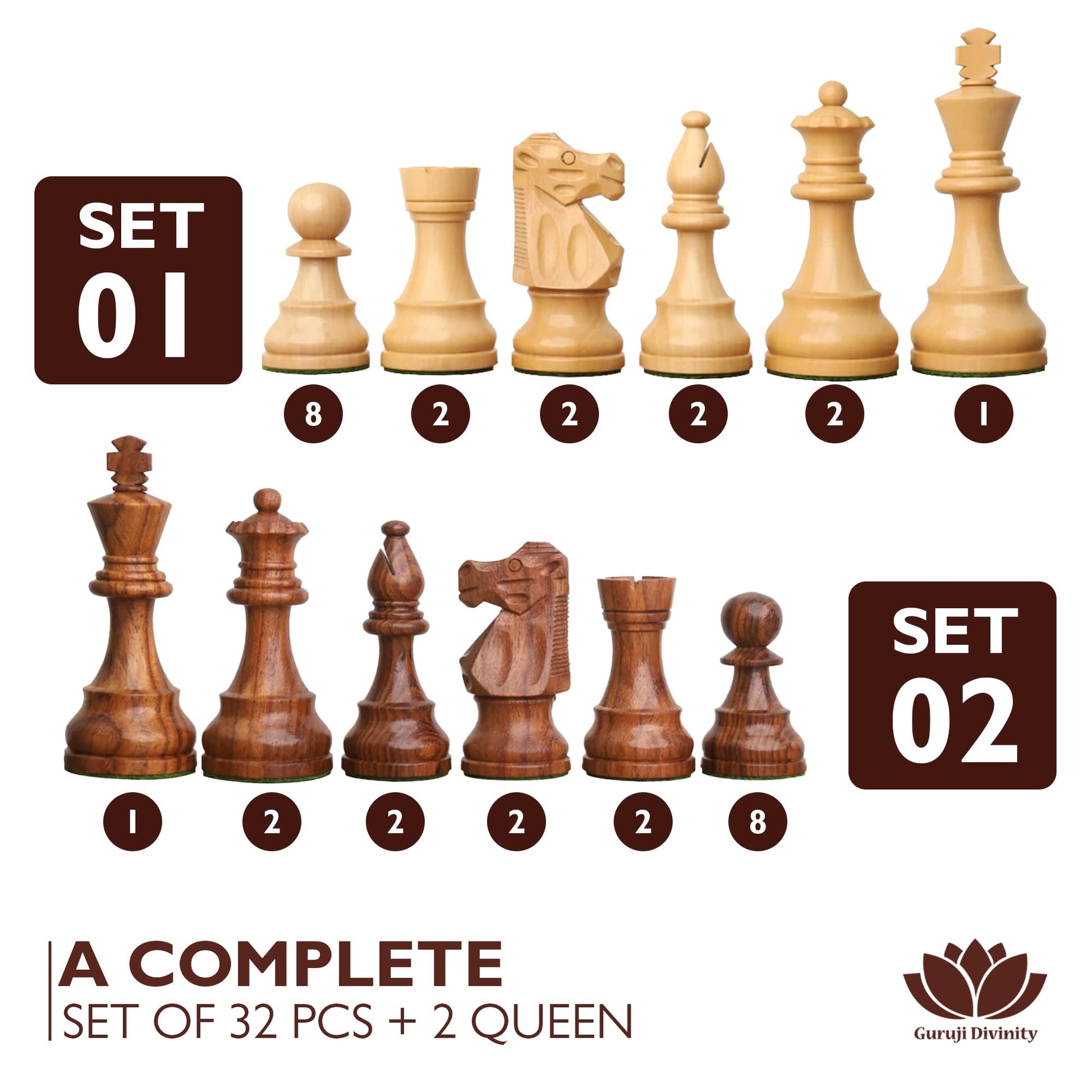 Wooden Chess Pieces Chess Coins Pawns Chessmen Figurine Pieces Wooden Chess Pieces Pawn with Extra Queens Pieces Coins (4 '' King Height)