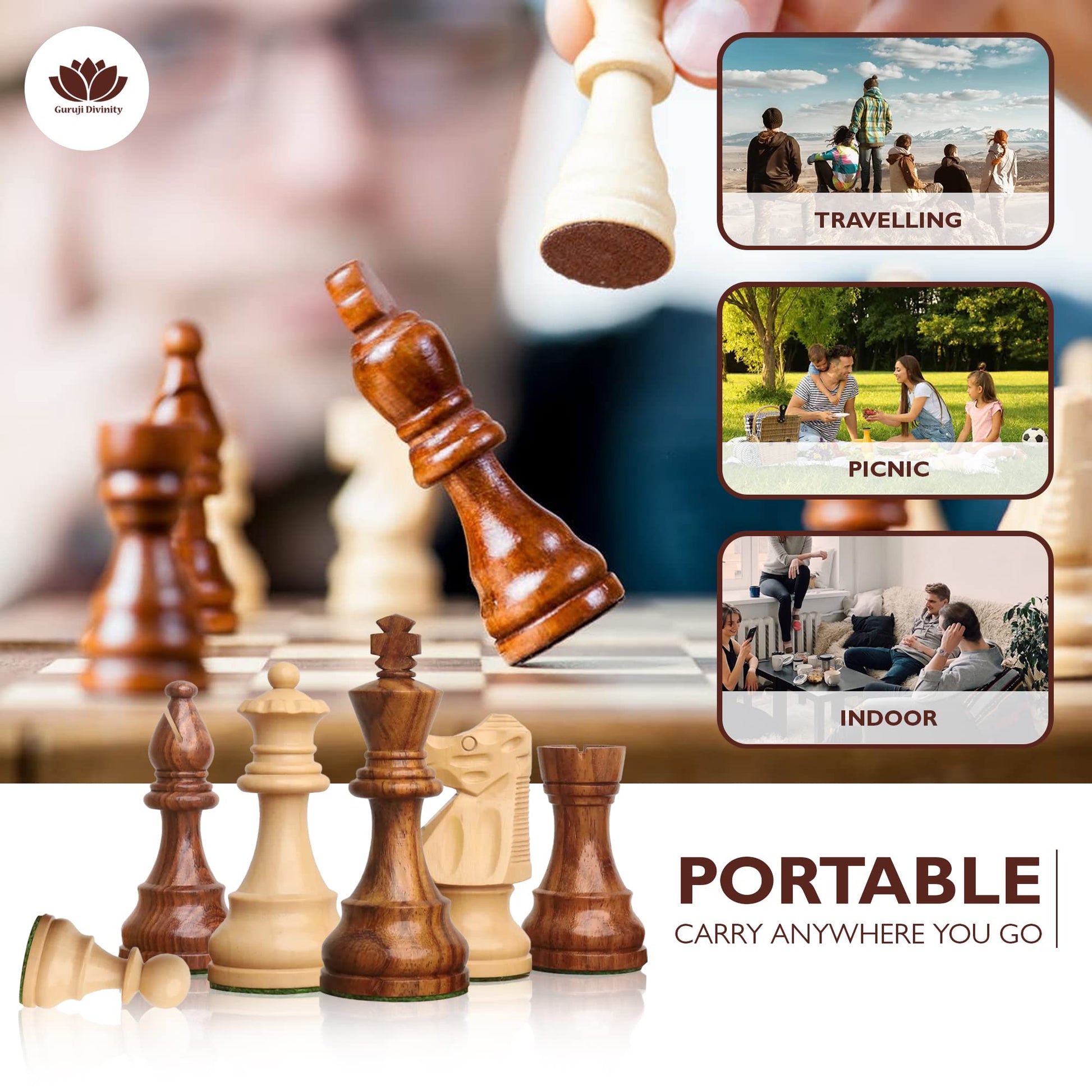 Blessings Decor Collector Edition Wooden Chess Pieces Chess Coins Pawns Chessmen Figurine Pieces (Brown & White)