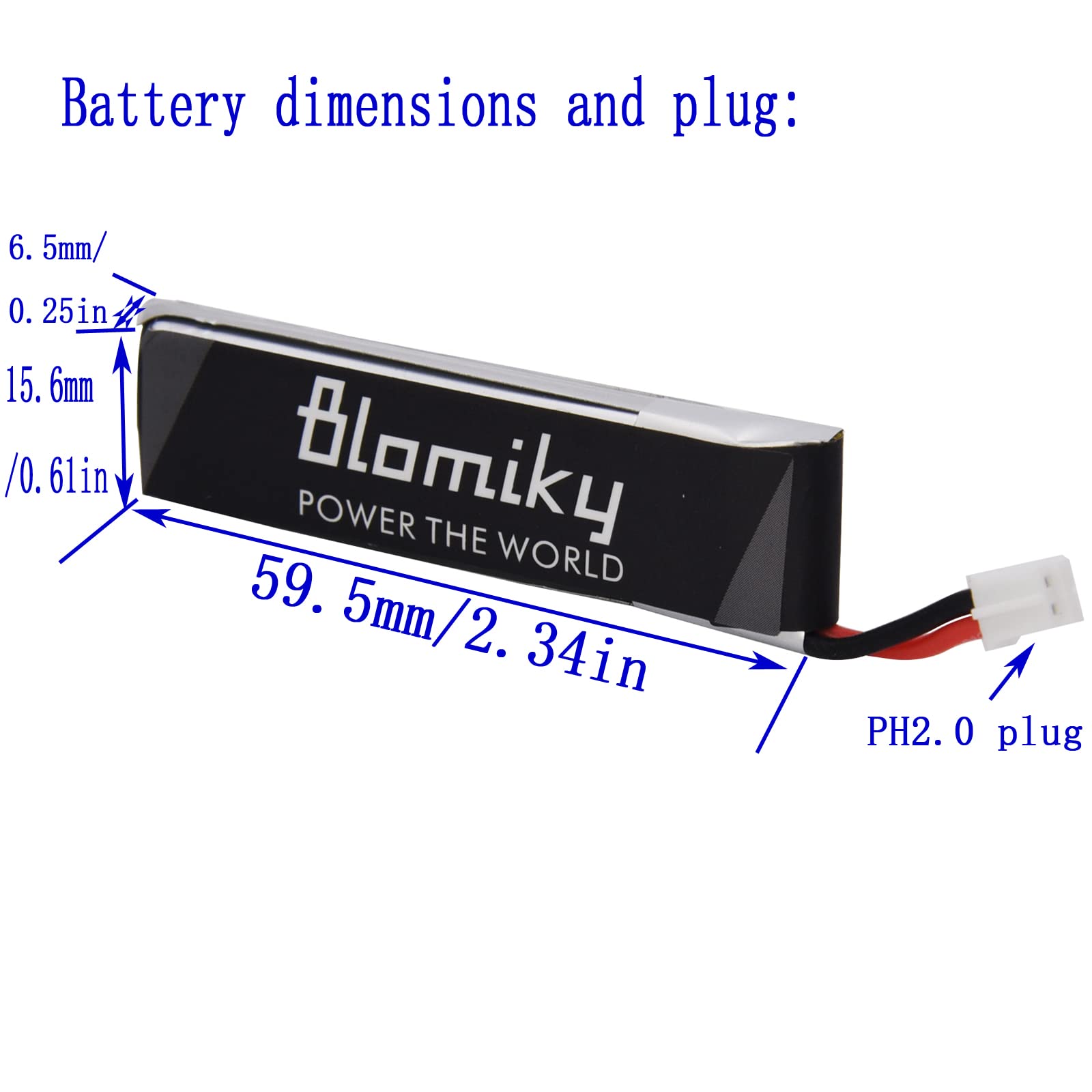 - Q: What are the dimensions and weight of the Blomiky 3.8V 450mAh battery? A: The dimensions of the battery are approximately 60mm in length, 16mm in width, and 6.7mm in height, weighing around 12 grams (0.43 oz).