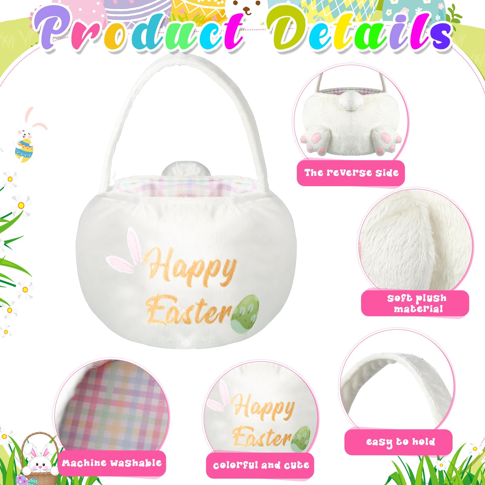 Feature: Plush Easter basket playset: Not just an Easter basket! This adorable stuffed Easter basket is a complete set offering a magical surprise. Besides the plush Easter basket, it includes various playset items tailored for kids, making it an all-in-one Easter delight. The size and design of the Easter basket playset are carefully orchestrated for your little one. Their lightweight build and soft edging are ideal for small hands. Basic information: Color: colorful Material: plush Size detail: Carrot: 4.2 x 3.2 x 2.4 inch / 12 x 8 x 6 cm Chick: 3.9 x 3.2 x 5.9 inch / 10 x 8 15 cm Bunny: 4.33 inch / 11 cm Package included: 1 x Bunny plush 1 x Yellow chick plush 1 x Easter bunny basket 1 x Rabbit ears headband 1 x Yellow carrot plush Warm note: Manual measurement, there may be slight differences in size. Due to the screen display, the color of the item may differ slightly from the picture.